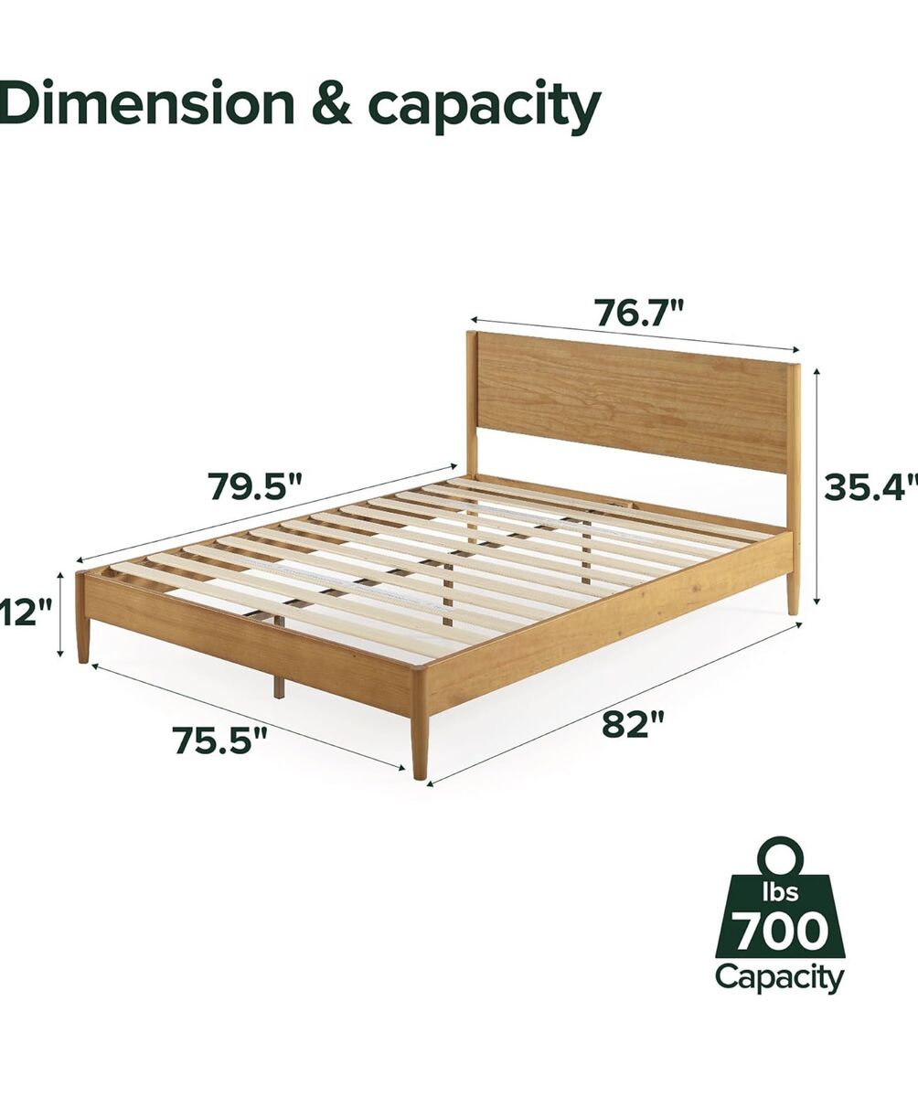 ZINUS Allen Mid Century Wood Platform Bed Frame/Solid Wood Foundation/Wood Slat Support/No Box Spring Needed/Easy Assembly, King