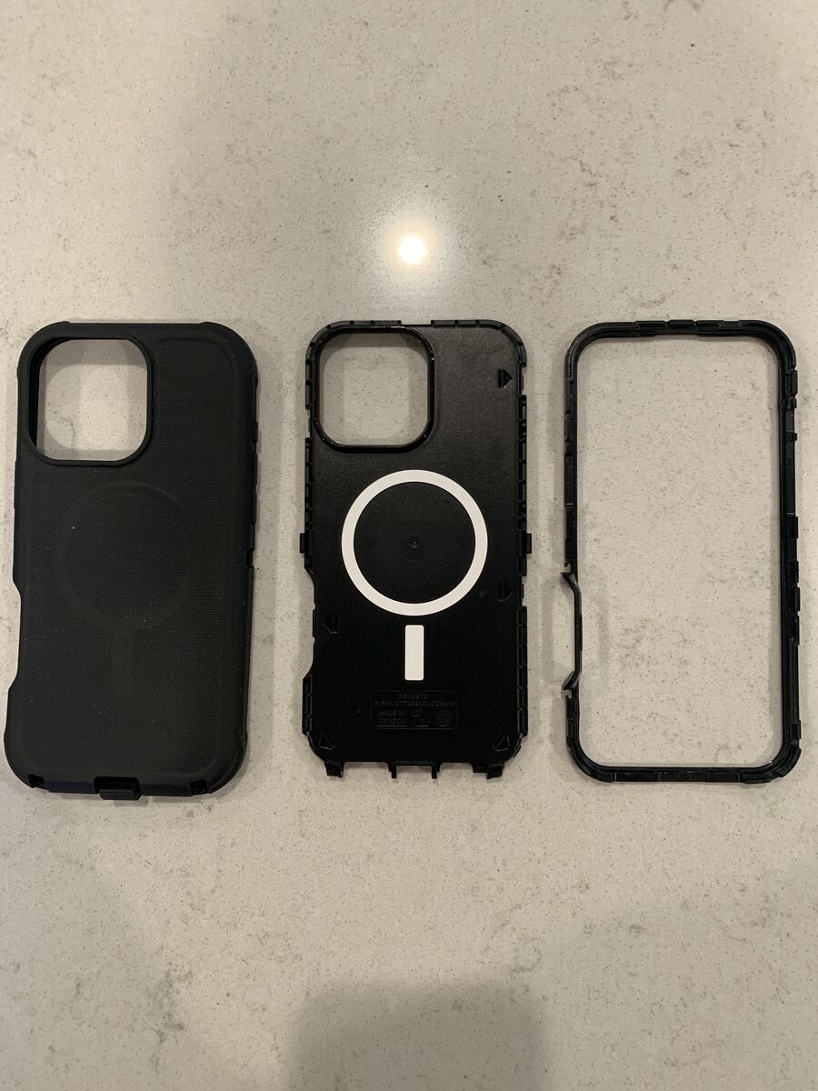 VenmoiPhone 16 Pro Max Phone Case. Otterbox phone case for the iPhone 16 Pro Max. 3-piece assembly. Measurements: Appox. 3 1/2 x 6 13/16". Black. Photos show how the case can be disassembled.