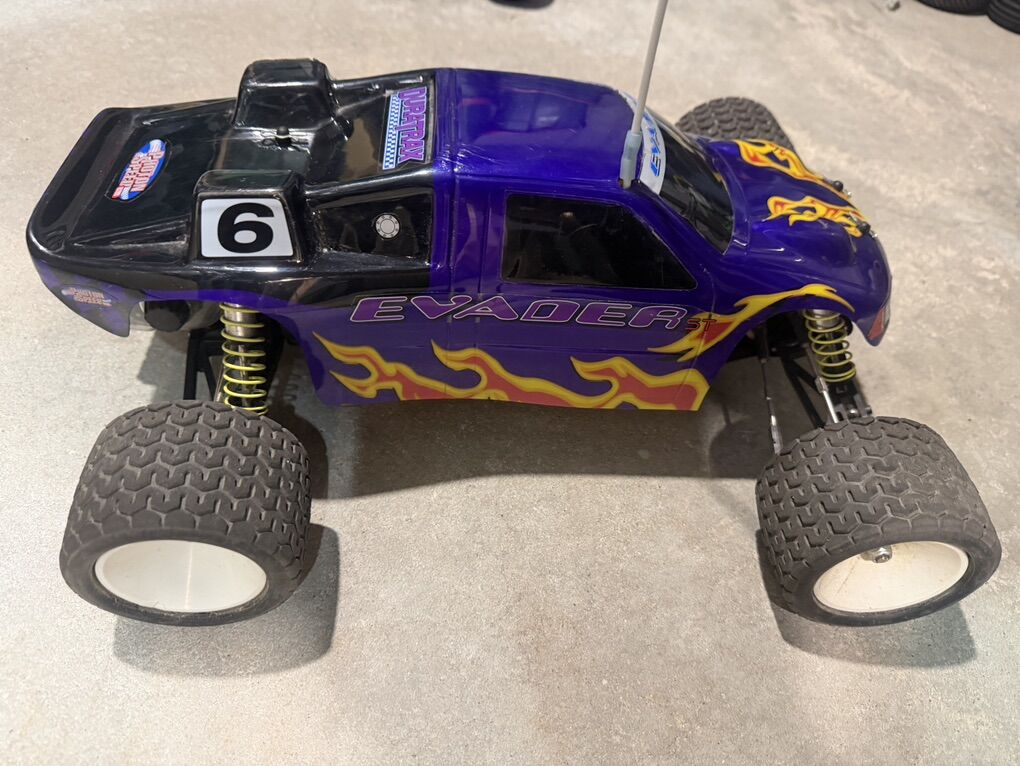 Two Evader R/C 1:10 scale race cars. Complete with everything included in the photos. Extra batteries,tires and misc. parts. $165.00