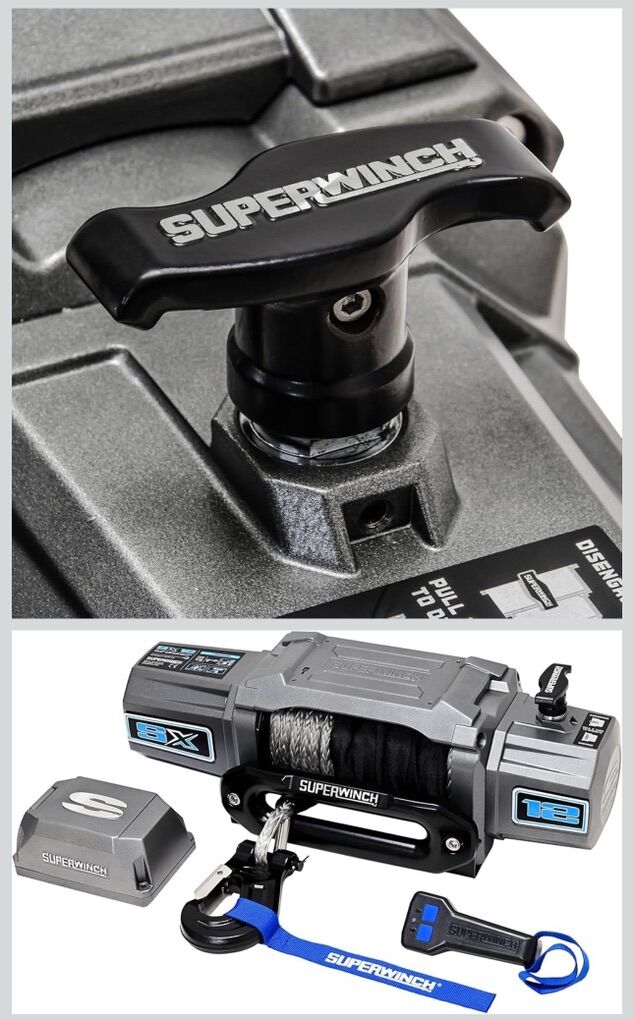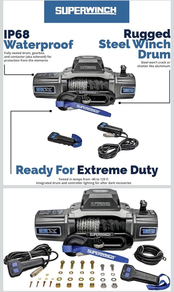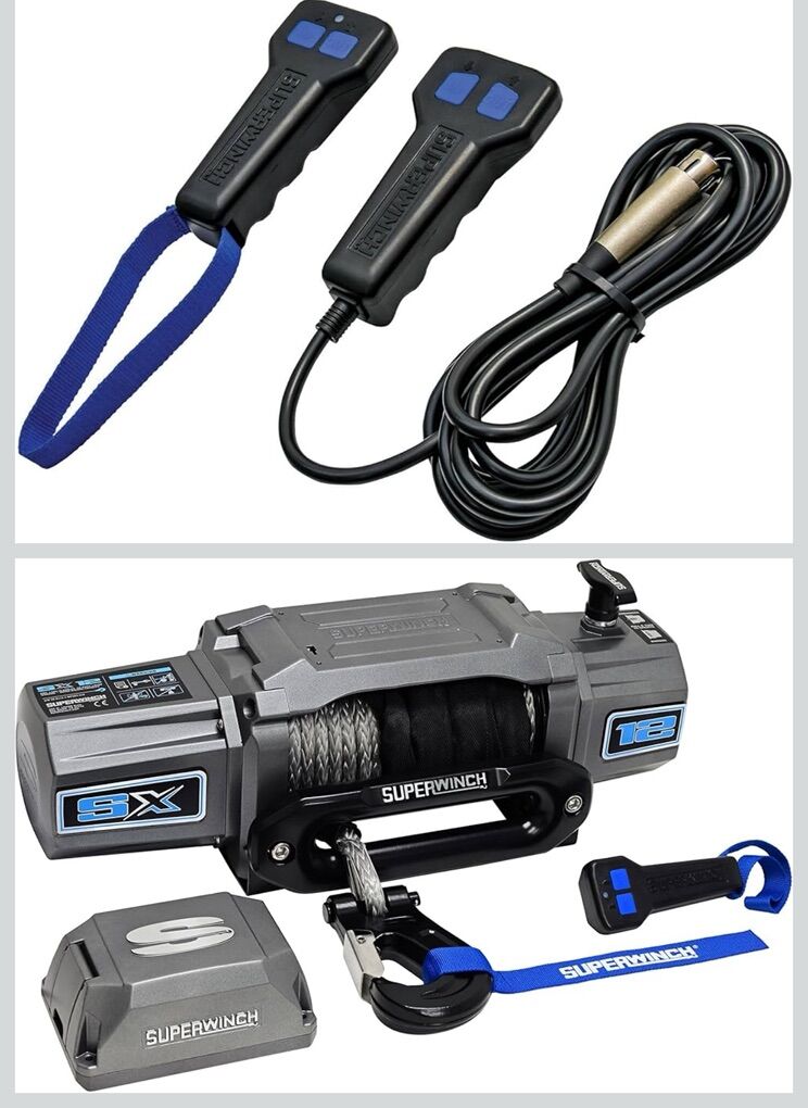CashAppNEW IN BOX - Superwinch 1712201 SX12SR 12V DC Electric Waterproof Recovery Winch 12,000lb/5,443kg Single Line Pull with Hawse Fairlead 3/8in x 85ft Synthetic Rope Corded Handheld and Wireless Remote No-Bind Clutch