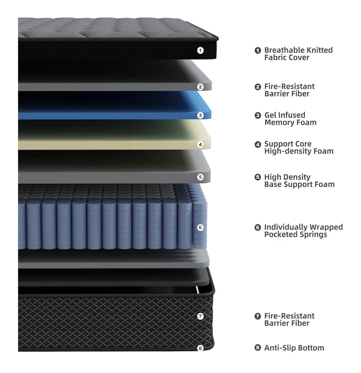 ※Excellent Craftsmanship:Mattress are constructed with a 5-layer full foam system and 1-layer independent packaging spring and 1-layer breathable knit mask. On top is a gel-infused memory foam that keeps you cool. The egg box-designed foam layer adds airflow to all areas of this large memory foam mattress. The mattress cover also improves breathability by 30%. Make sure you sleep longer with this mattress.