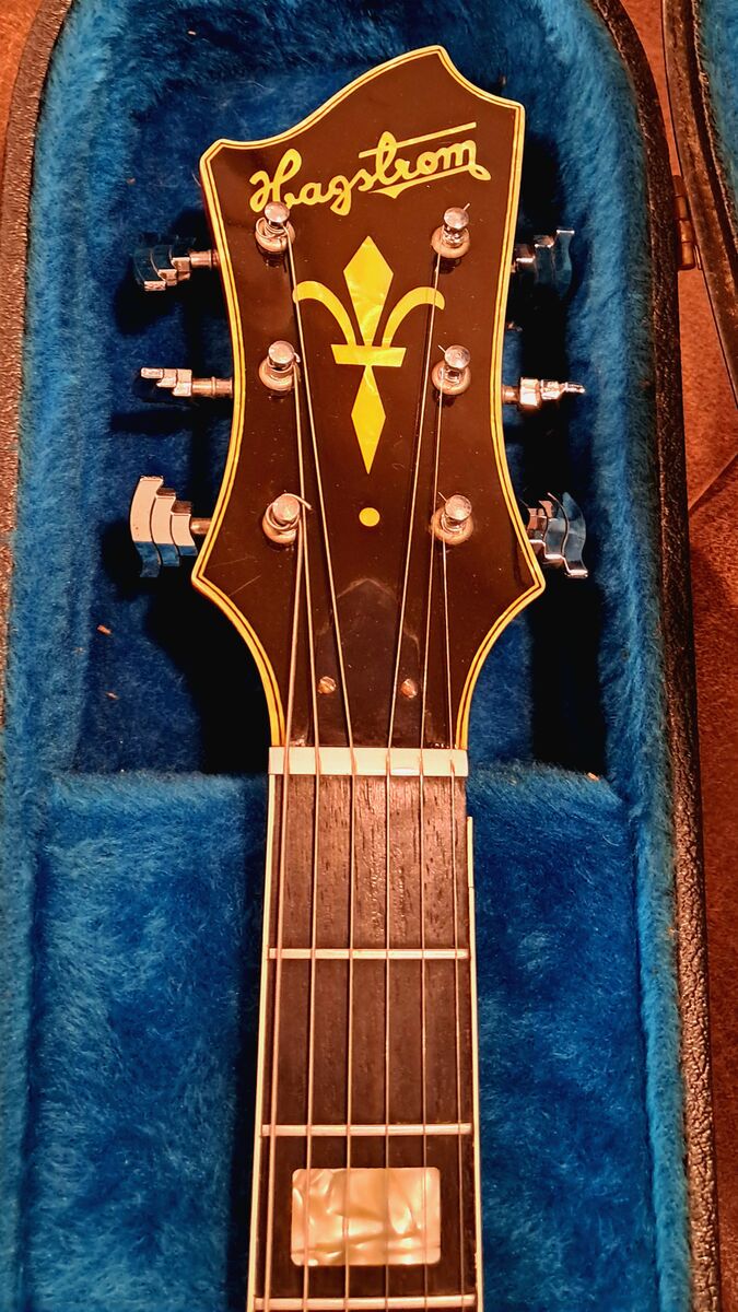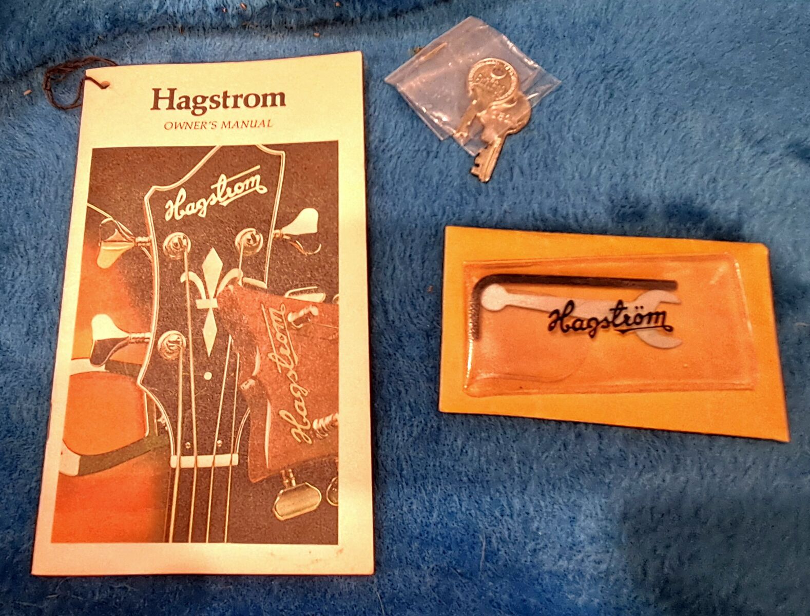 Vintage 1970's Hagstrom Swede guitar made in Sweden. Except for small section of binding missing from above the first fret it's in excellent condition. Comes with the original case and the original Hagstrom manual and tool kit and key. $1150.