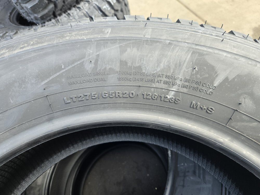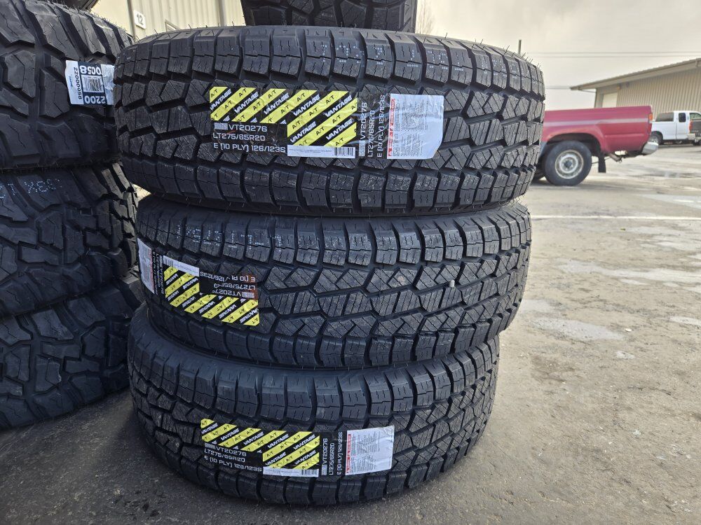 Brand new set of tires are VANTAGE AT. Size is LT275/65R20. Free mount, balance, and brand new valve stems. $770+ tax Price for all 4 Also check out our GOOGLE reviews to assure you’re in good hands, just search (Oliver Tires) We also offer lots of other sizes new and used. Call or text for availability
