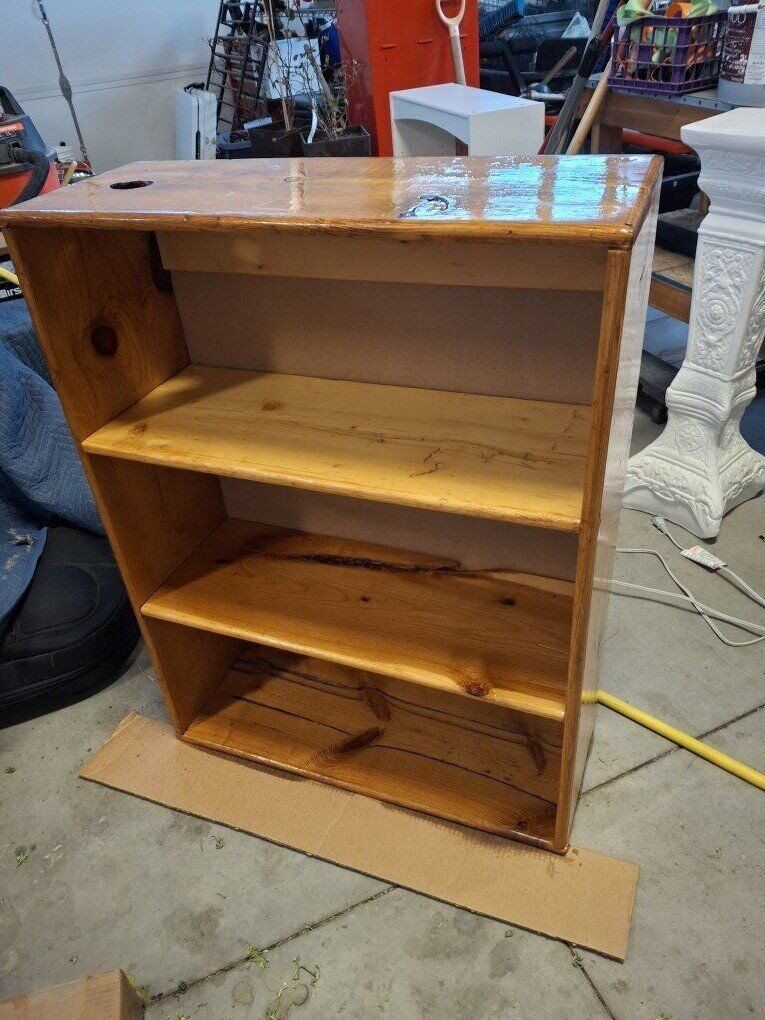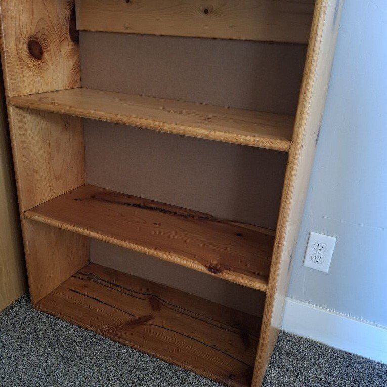 VenmoNewly revarnished bookshelf. Beautiful rustic wood. Perfect for a cabin or boys' room. The dimensions are 29 1/2" by 39 1/2". The shelves are 11 1/2" Cash or Venmo. Please view my other listings.