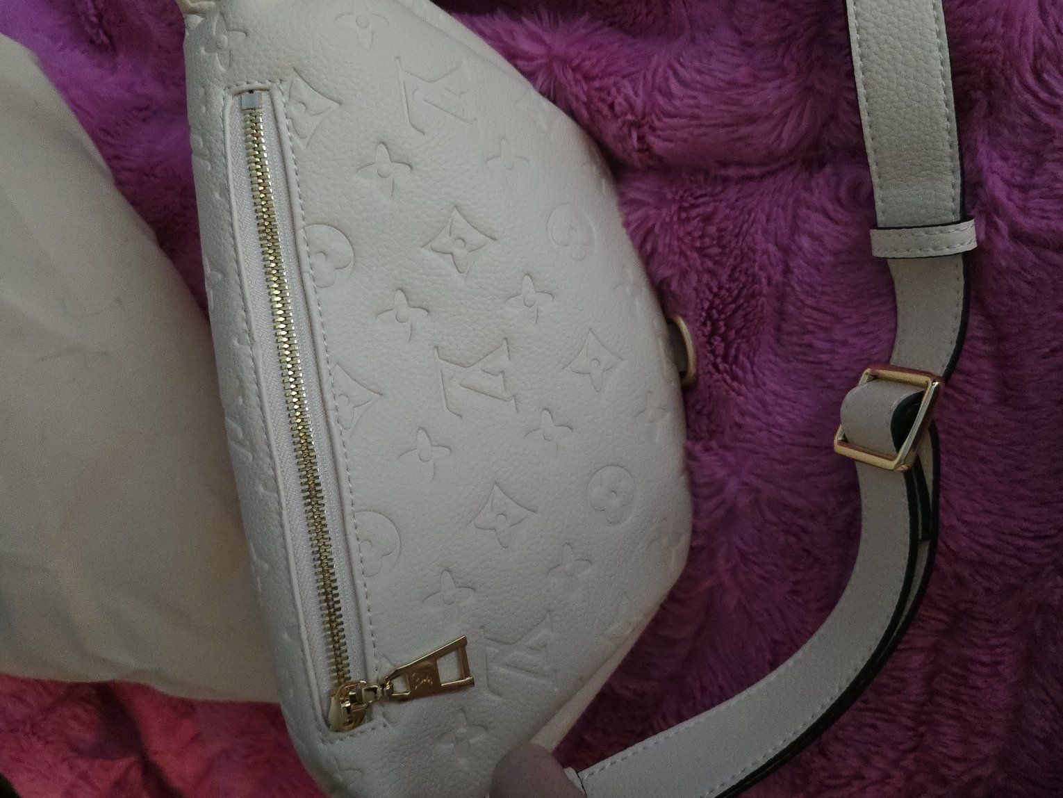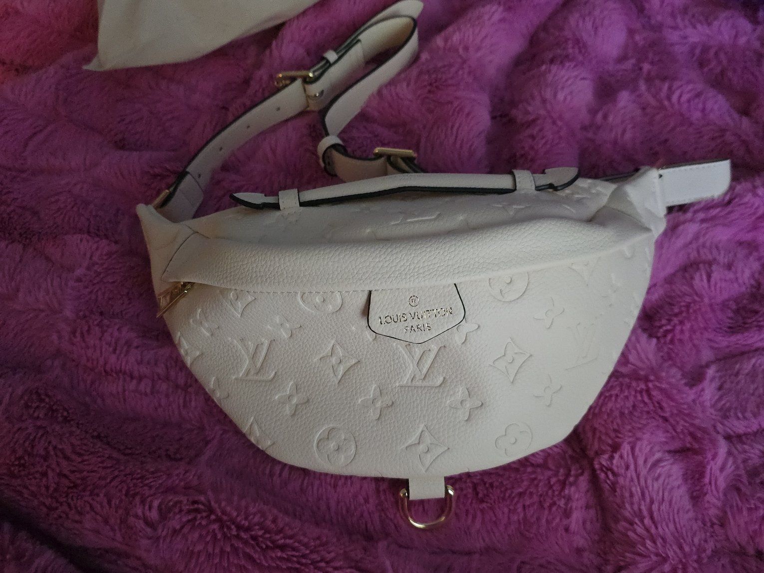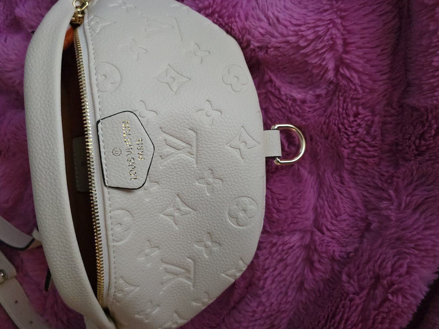ZelleVery cute off white faux LV bum bag. I paid like $80 or more with shipping. I haven't used it, been sitting in the dust bag. Asking $60obo.