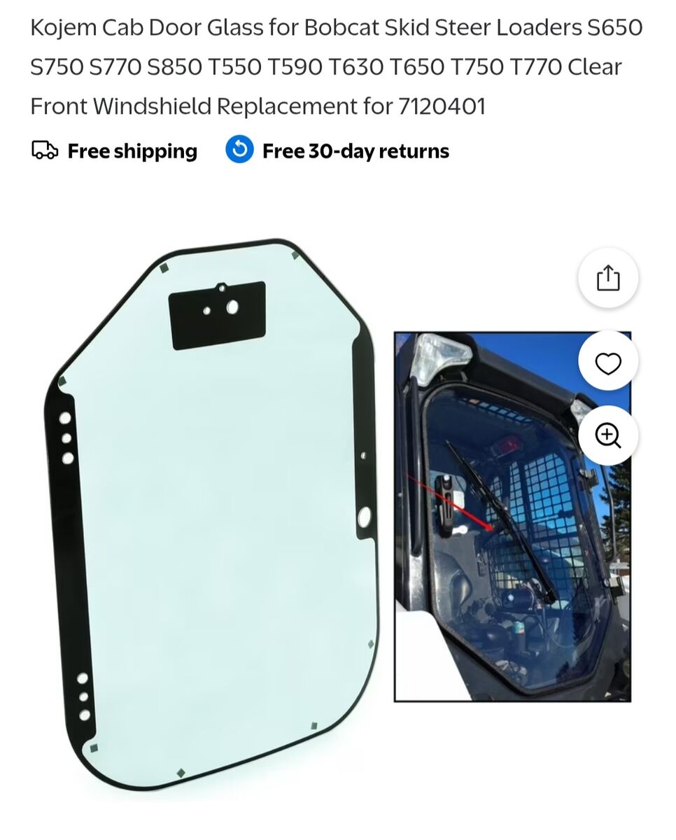 Clear Front Windshield Replacement for Bobcat Skid Steer Loaders S650 S750 S770 S850 T550 T590 T630 T650 T750 T770 - Durable, Scratch-Resistant Glass