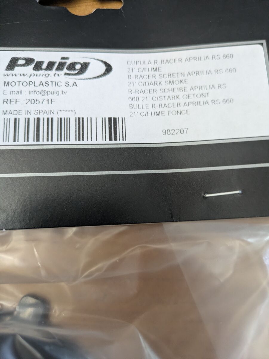 VenmoUnopened, brand new. 20571F. Dark smoke, acrylic windscreen, double the height of stock, with side channels for better airflow. https://www.denniskirk.com/puig-hi-tech-parts/dark-smoke-r-race-windshield-20571f.p2410429.prd/2410429.sku?srsltid=AfmBOorxCVcSvfOhUKQubMG_1kci_BuiAw9zw_v5wjYTinDX8nXepnVI