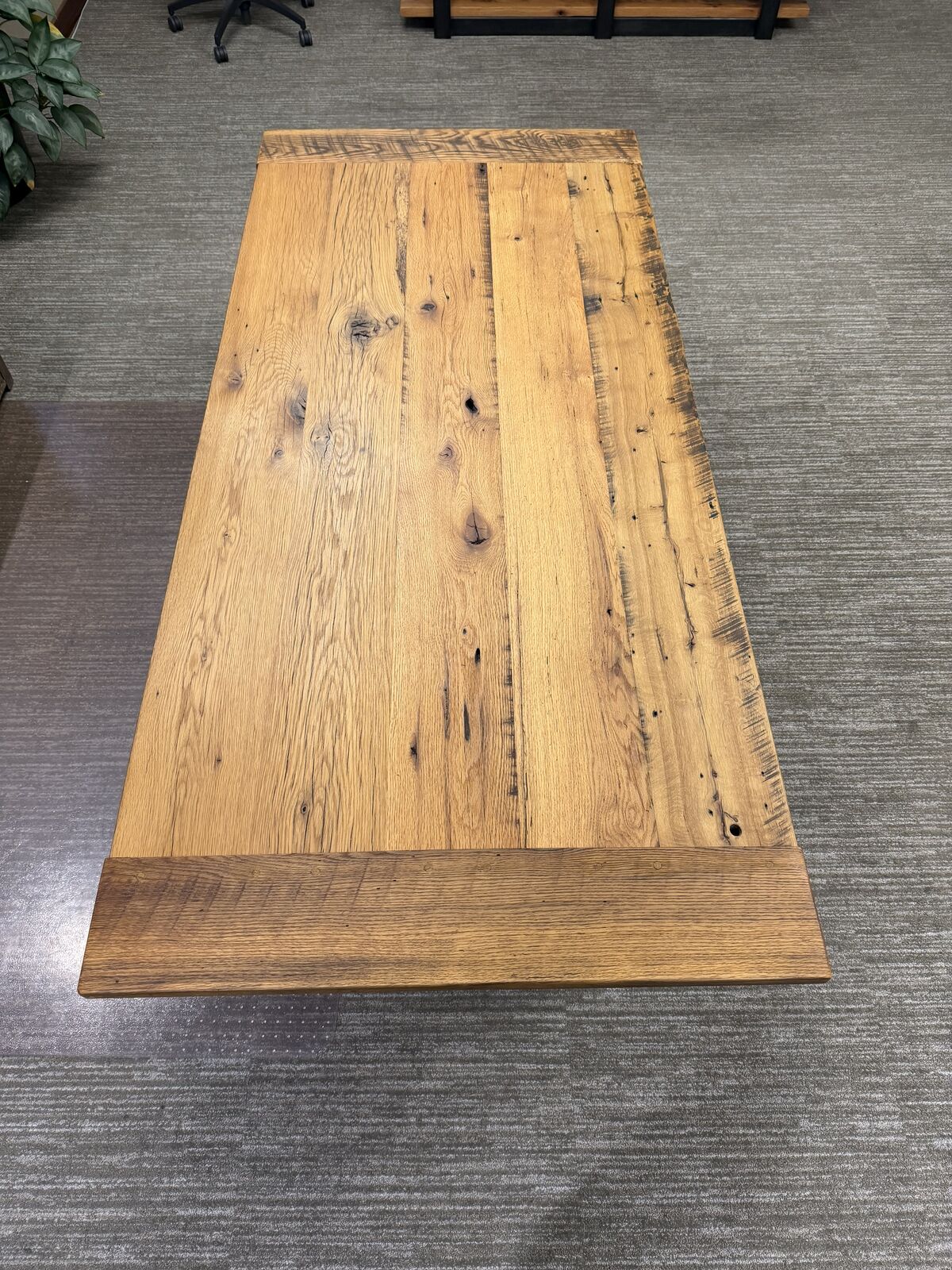 PayPalIndustrial style desk/table. Top is made from 1 1/2 thick reclaimed oak and frame is made from steel. Approximately 73x36x30. Message, text, or call if you have any questions or would like to schedule to view.