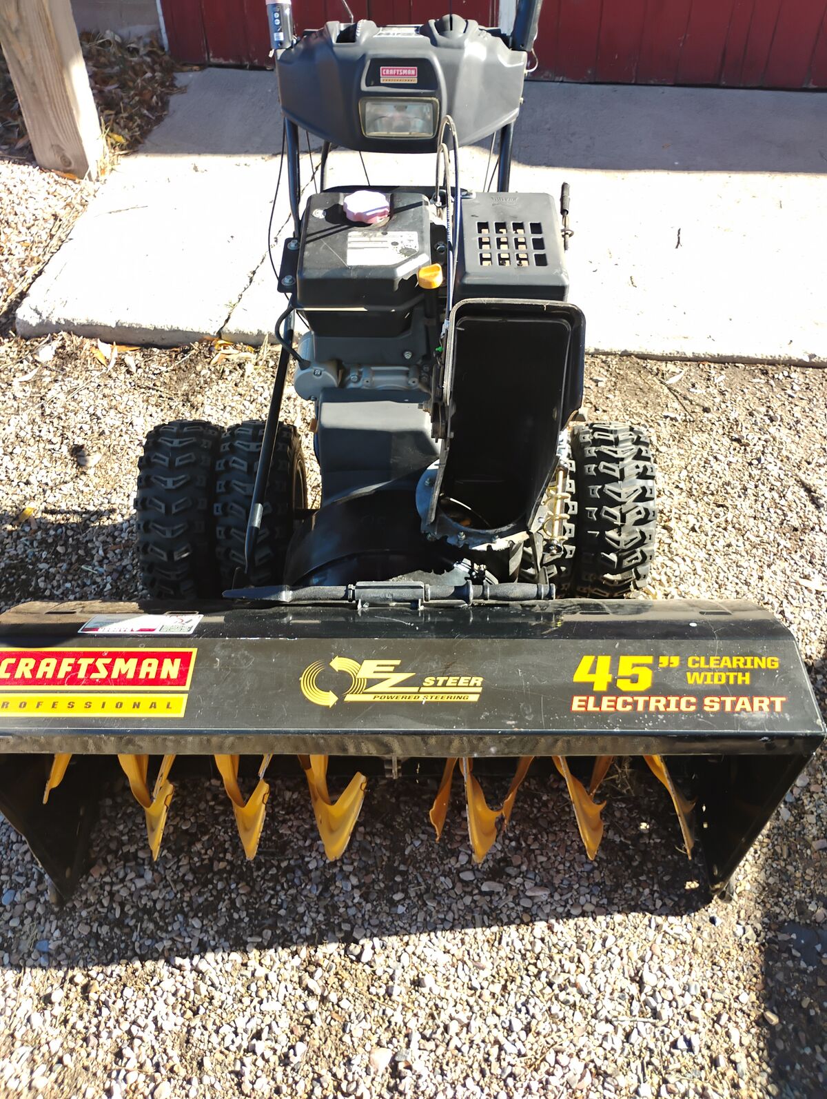 PayPalCraftsman’s largest walk-behind snow thrower. This machine is extremely big and powerful. It is designed to clear a huge driveway or large, wide sidewalks. It features huge capacity, large deep tread tires, a big 420 cc motor, power steering, and both pull and electric start. It can handle any kind or depth of snow with ease. It is best suited for large, hard surface areas like parking lots, large driveways, and wide sidewalks.