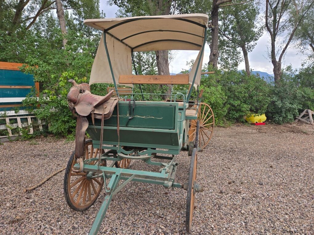 HORSE DRAWEN WAGON STEEL CONSTRUCTION/ MADE IN SO. UT ROLLER BEARING WHEELS, FIT'S IN BACK OF PICK-UP, REMOVABLE TOP 1 OR 2 HORSE. THIS WAGON WILL GO FASTER THAN YOUR HORSE