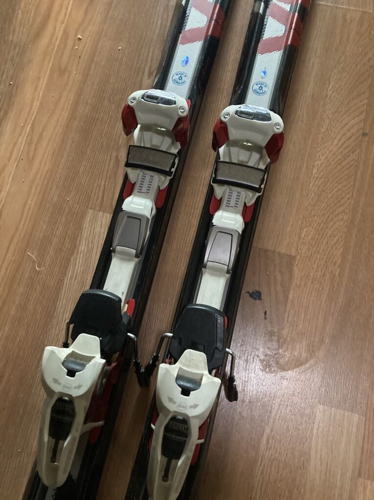 Bindings adjust to just about any size they have a lever you lift to adjust no tools needed