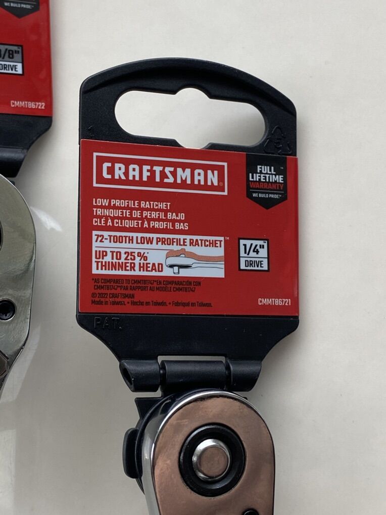 This listing is for a complete set of three brand new Craftsman low-profile ratchets, still attached to their original retail blister packs: