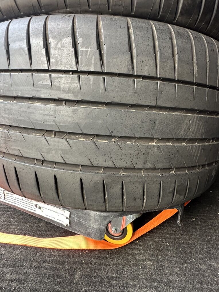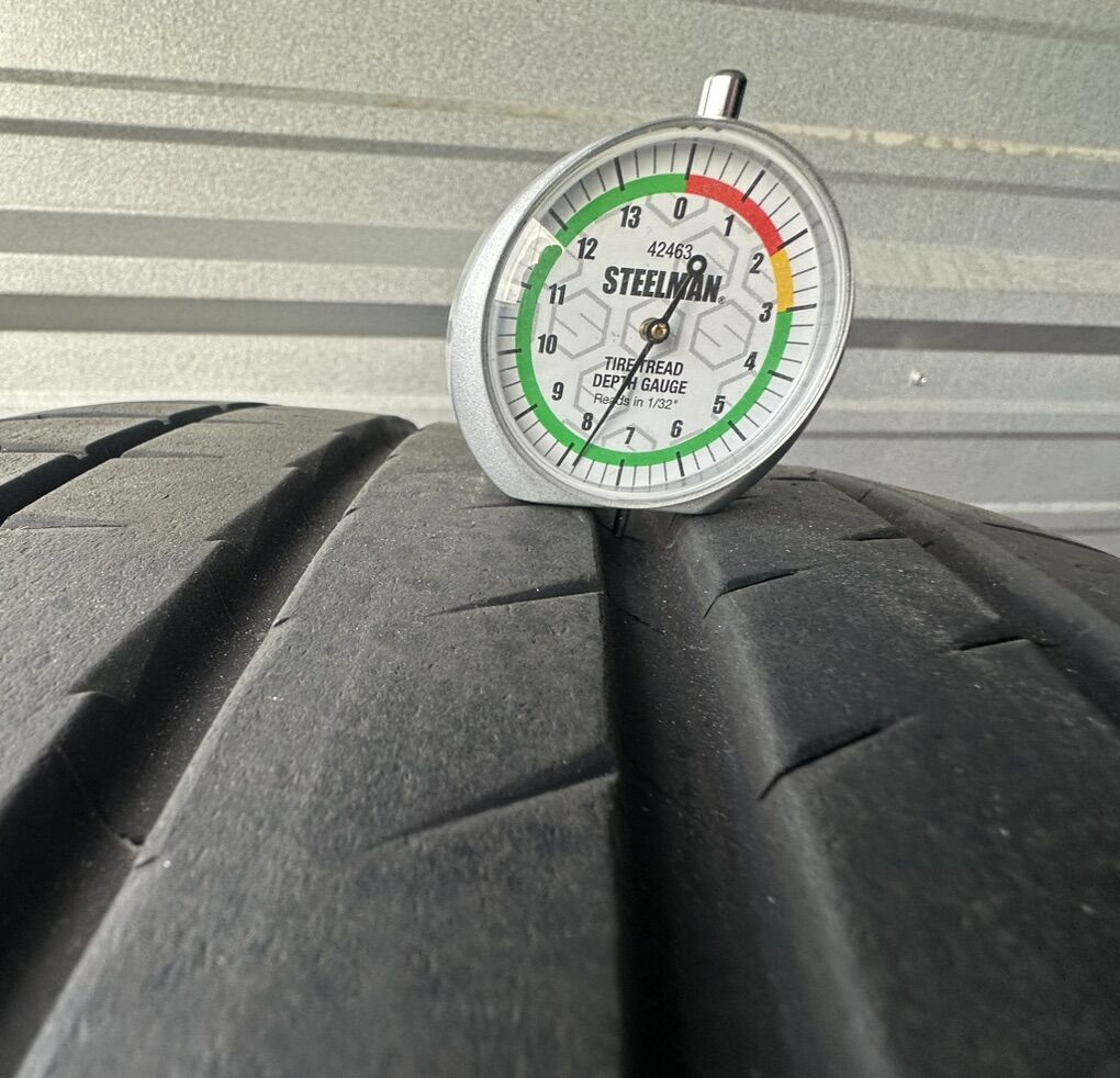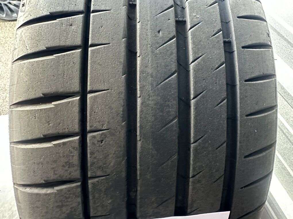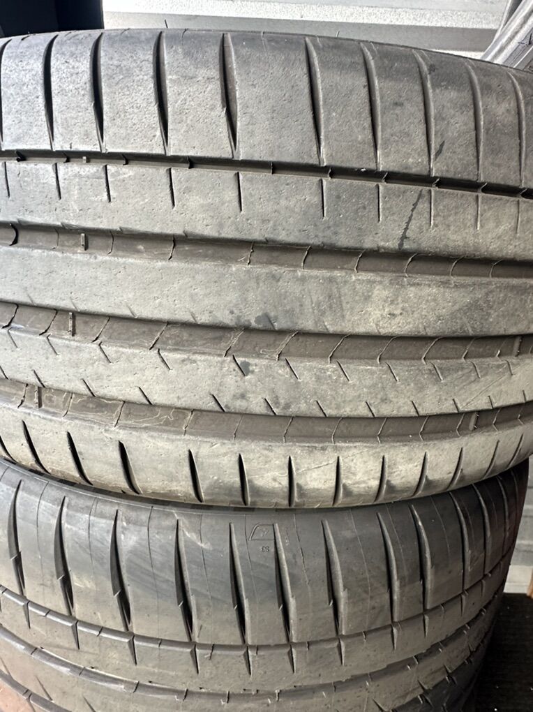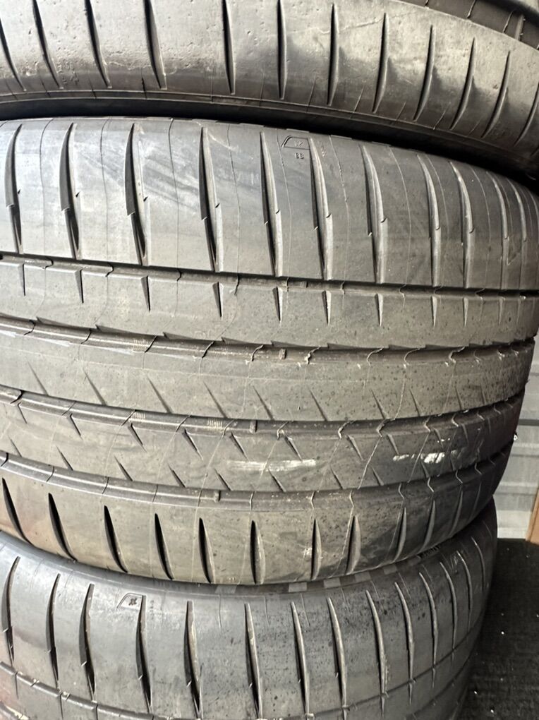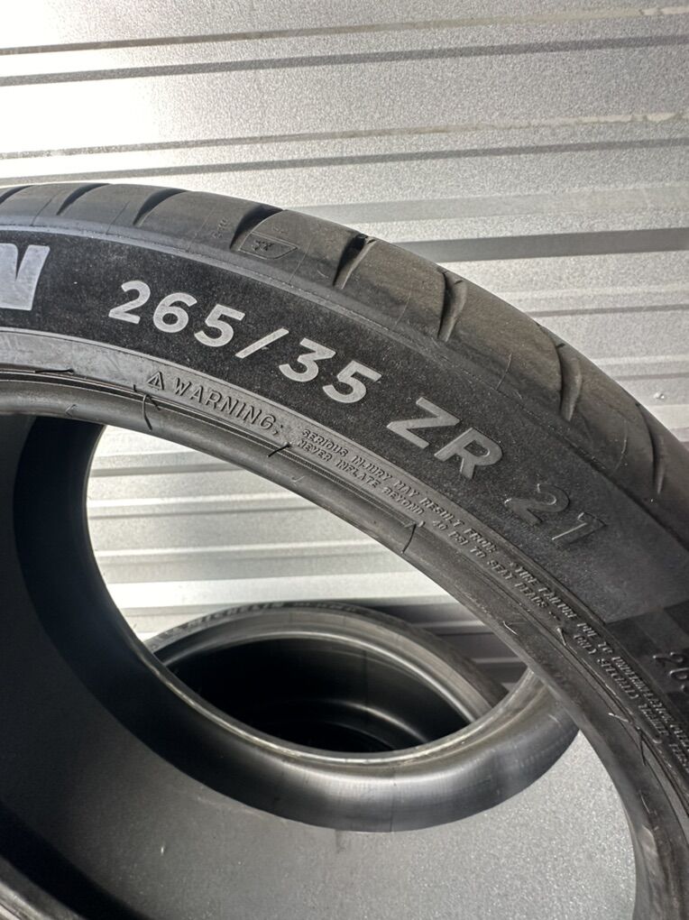 Set of very high tread, lightly used Model S Plaid tires. These are the 265/35/21 & 295/30/21 Michelin Pilot tires. 2X 265/35/21 2X 295/30/21 Tread depth is 8/32nds