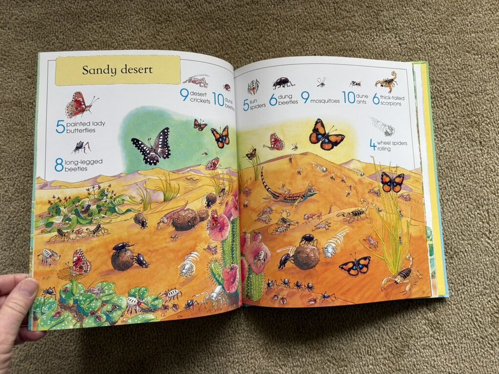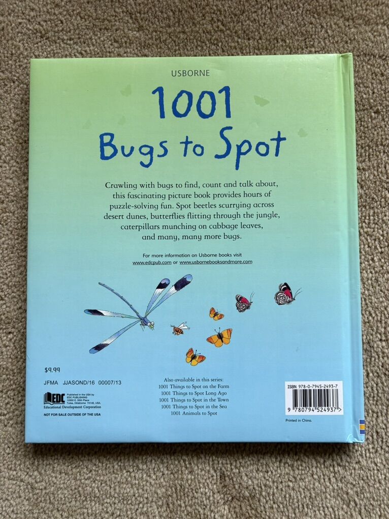 Usborne 1001 Bugs to Spot. Fun search and find book full of puzzles and bug/insect things to find. Soft hardcover in very good condition. No marks on pages. Text only. Cash or Venmo. Discount on multiple items.
