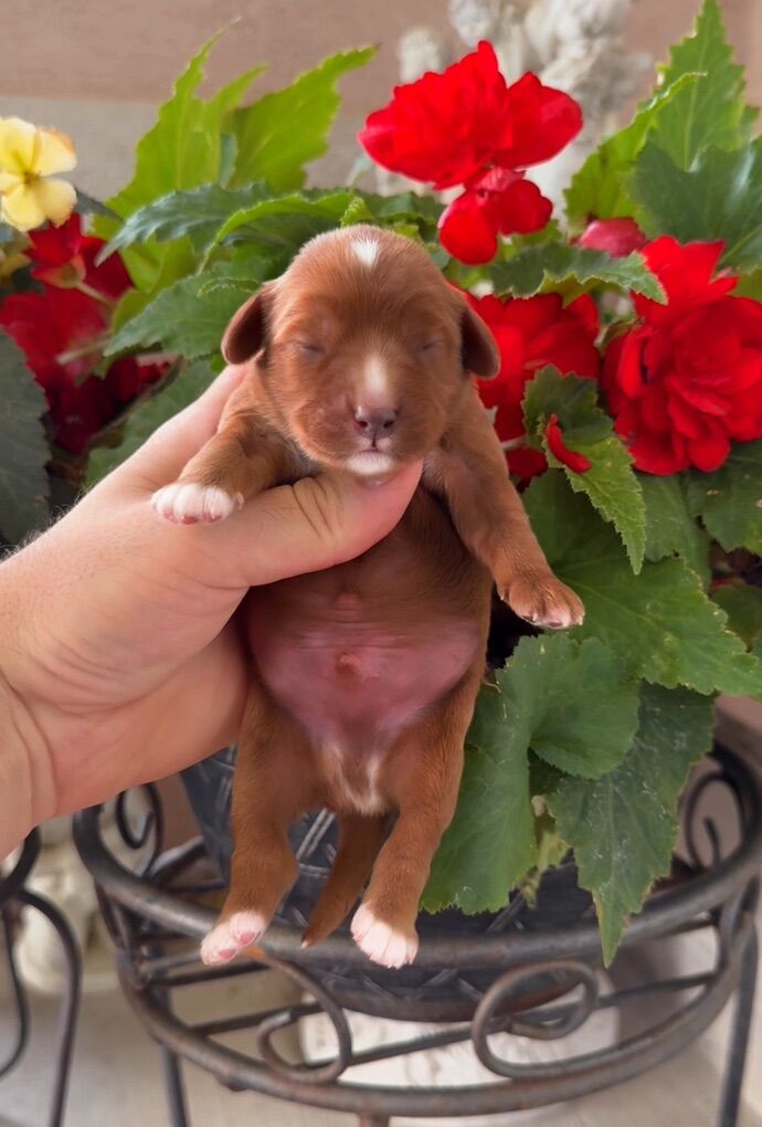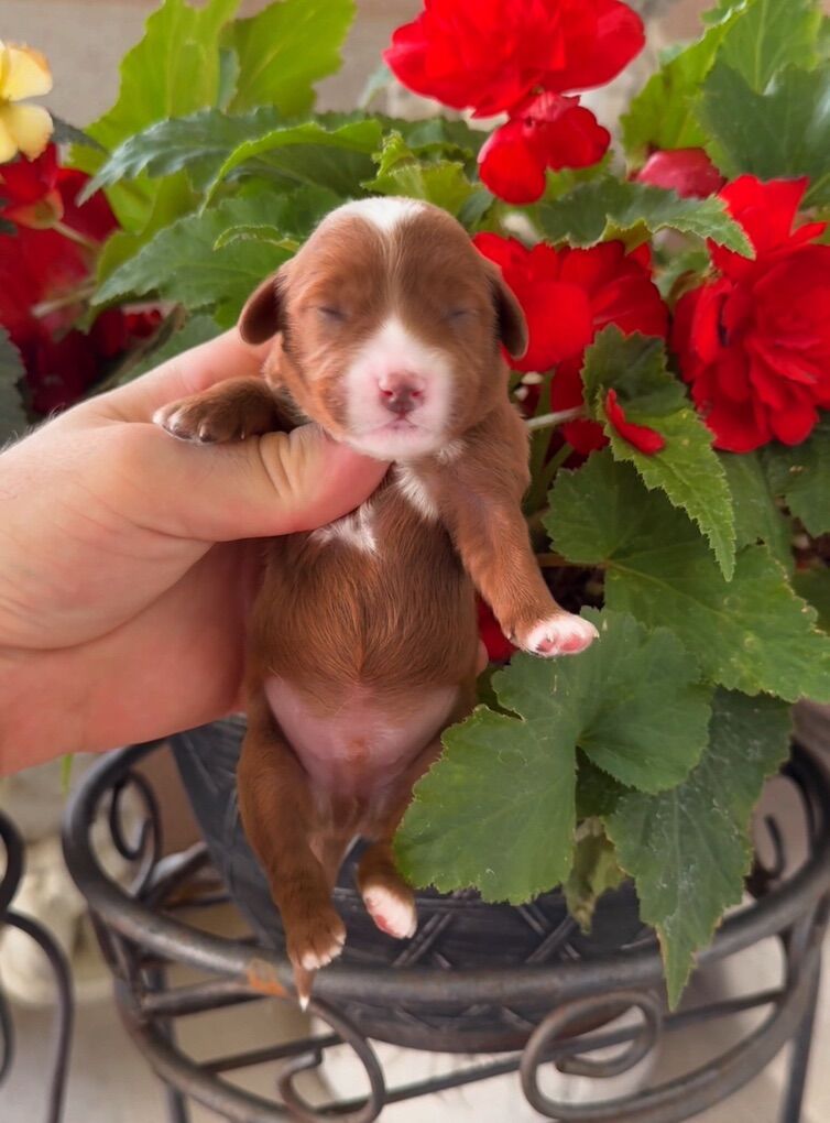 Banksy has also received his OFA’s for the following: Hips, Heart, Eyes, Elbows, Patellas and has passed with flying colors! This boy is perfect through and through and you cannot go wrong using him. He is a deep deep red and perfect for getting those petite puppies with a wonderful proportionate structure. He is also capable of giving your pups a white chest and blaze through their face.