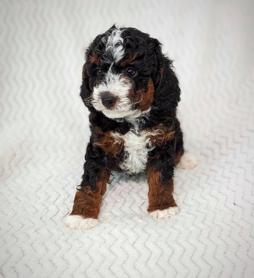 He is fully furnished, double curled, non shedding, will not dilute, does not carry the dominant black gene and is available to doodles of any kind; Bernedoodles, Labradoodles, Aussiedoodles, Goldendoodles, Cavapoos, Cockapoos, Maltipoos, etc... He is considered a unicorn and would literally be a perfect match for any breed!