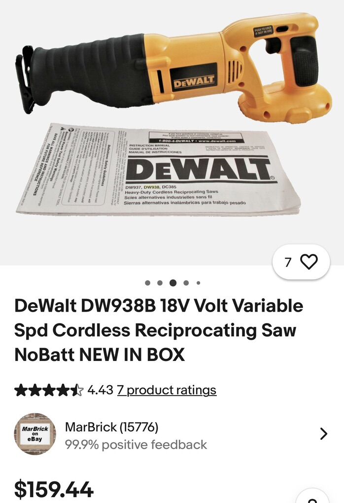 VenmoI have for a gently used DeWalt sawzall. 18V