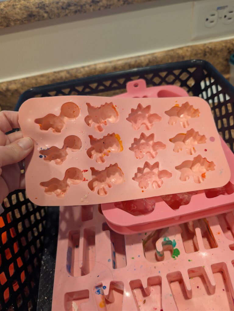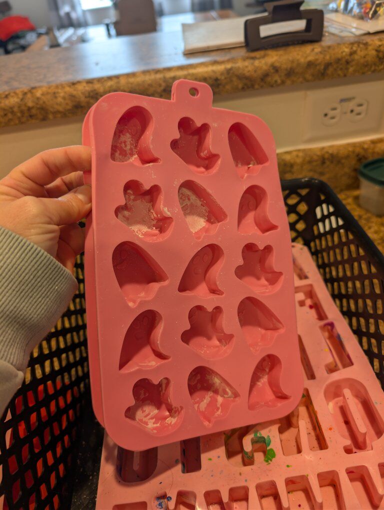 VenmoWax molds in used condition, nothing wrong other than needing a good cleaning. 1 pizza 1 dinosaur 2 Ghosts 3 alphabets