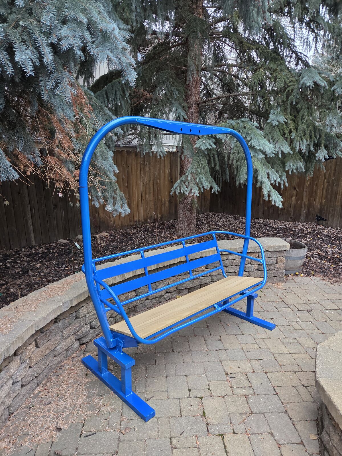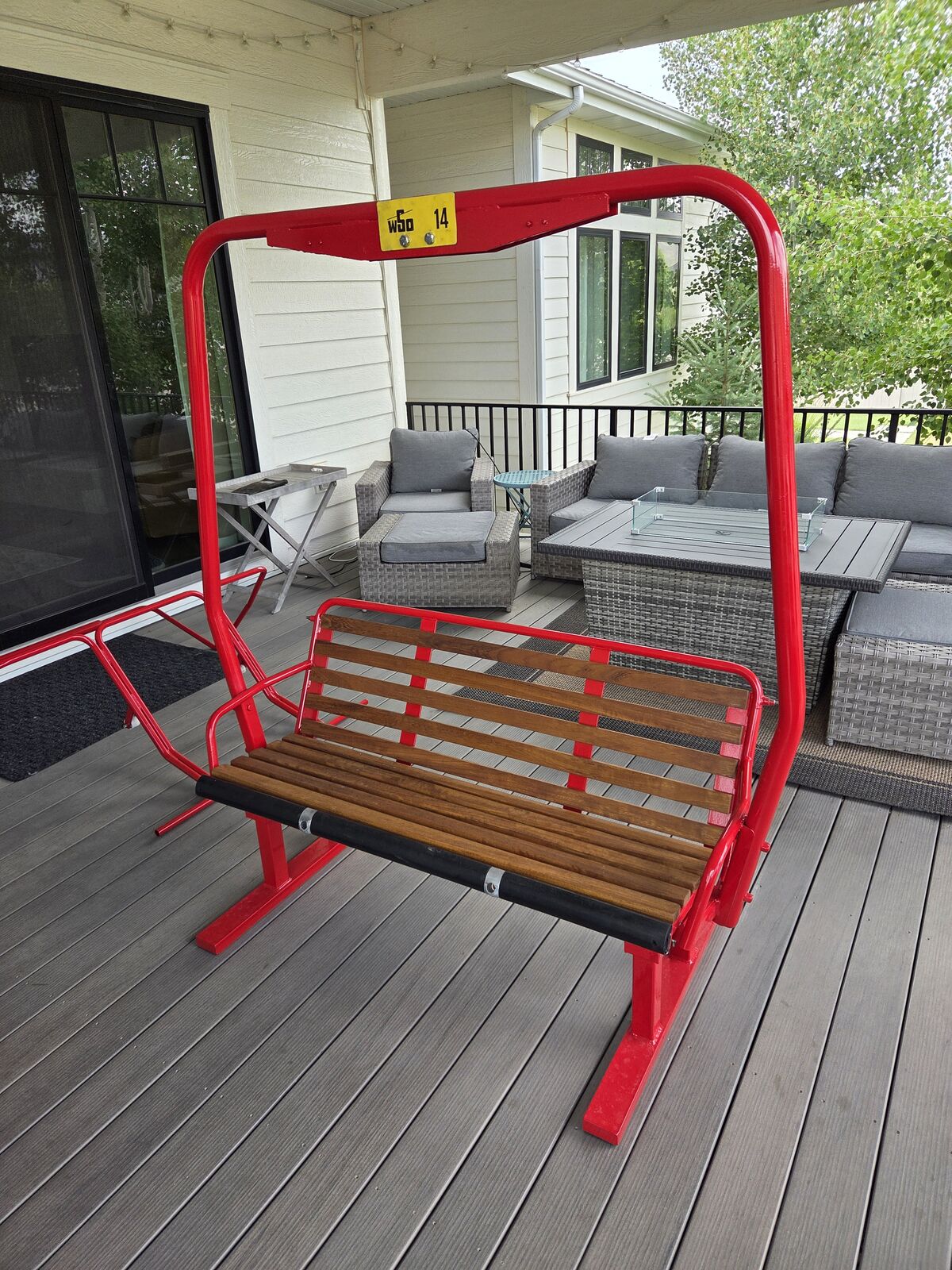 Let us refurbish you old ski chair chairlift and turn it into a swing! Options include powder coating of the chair, replacing the original seat with hardwood slats, and more. Message us for pricing on styles.