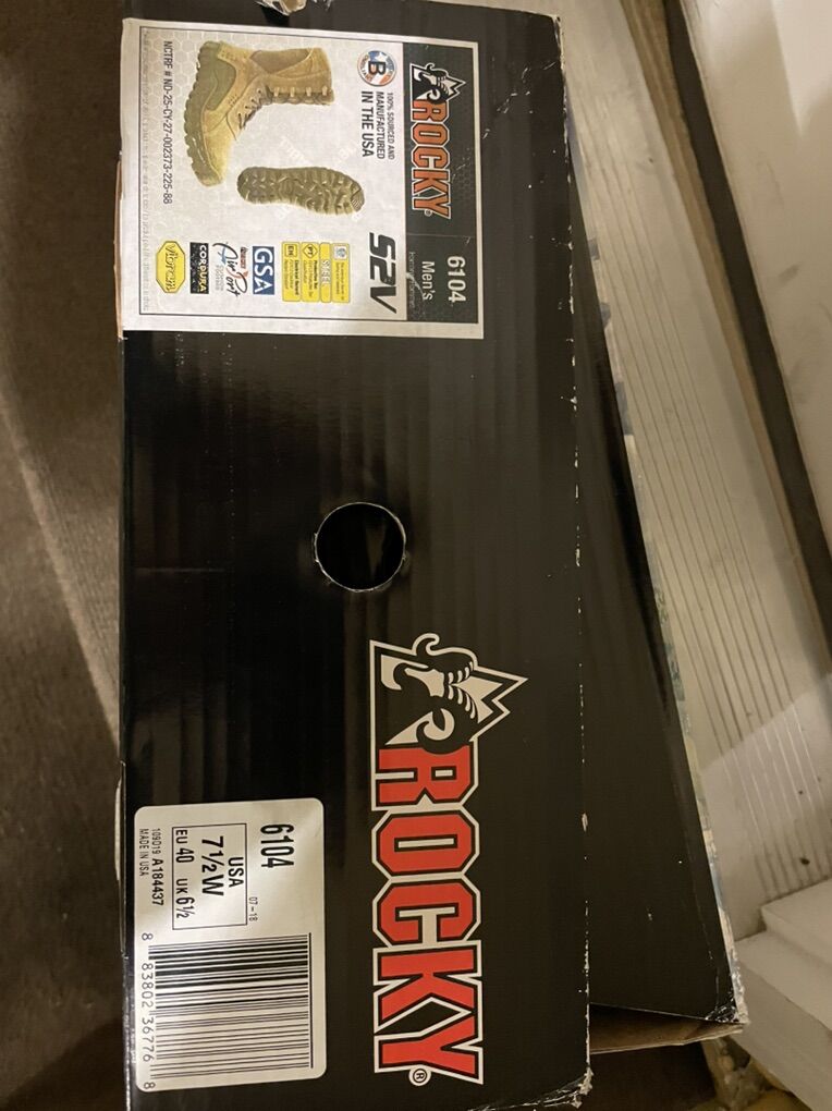 VenmoSize 7.5. Not sure how I ended up with this size. If you’re looking at this ad, then you know about Rocky’s so no need for me to explain. Brand new in box. Never worn. Regular price on Amazon is $318.