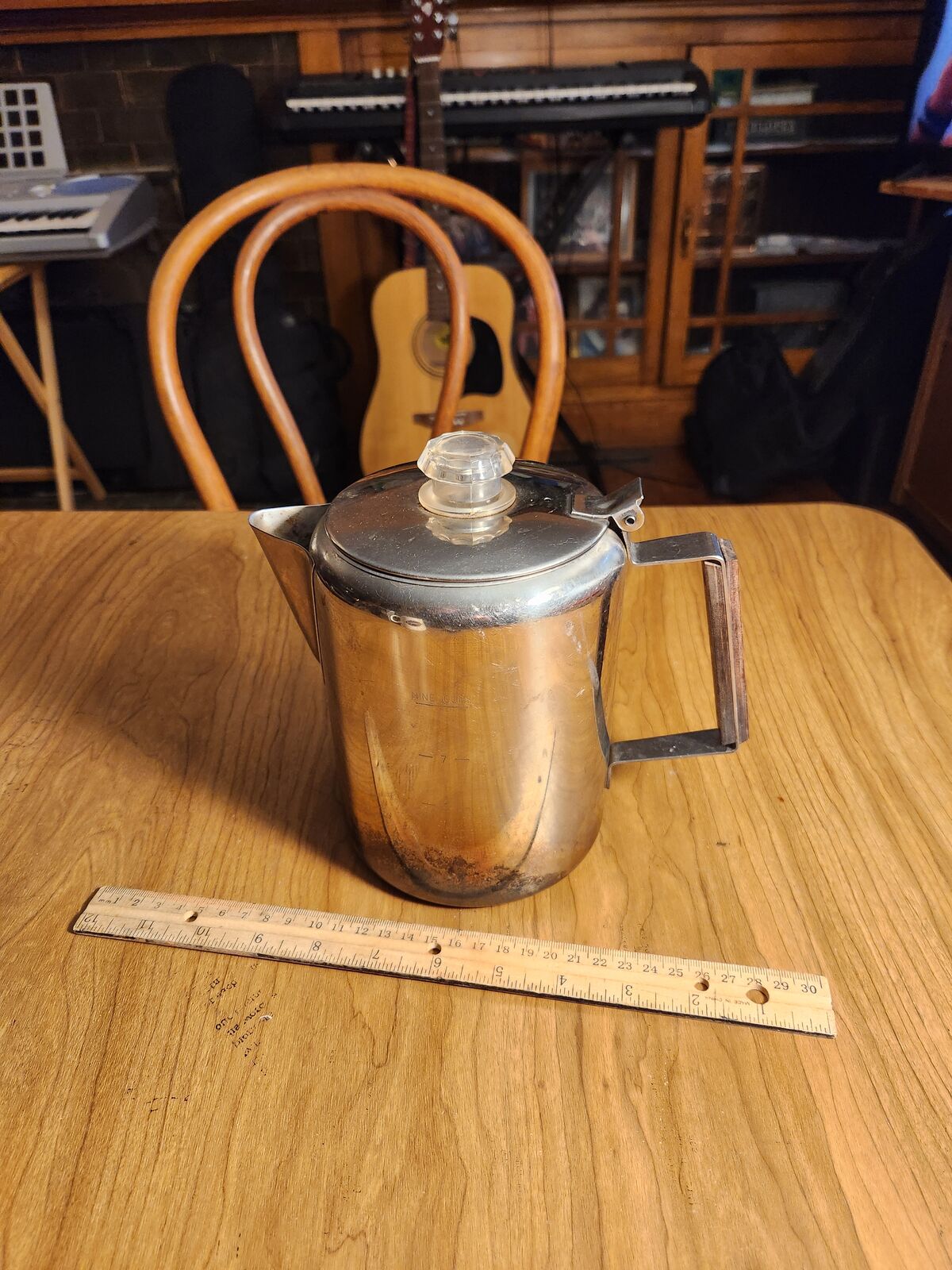 Stove top percolator coffee pot maker. 9 cup. Works great...makes great strong coffee. Could be used for camping too (but it hasn't been). Only been used on an electric stove.