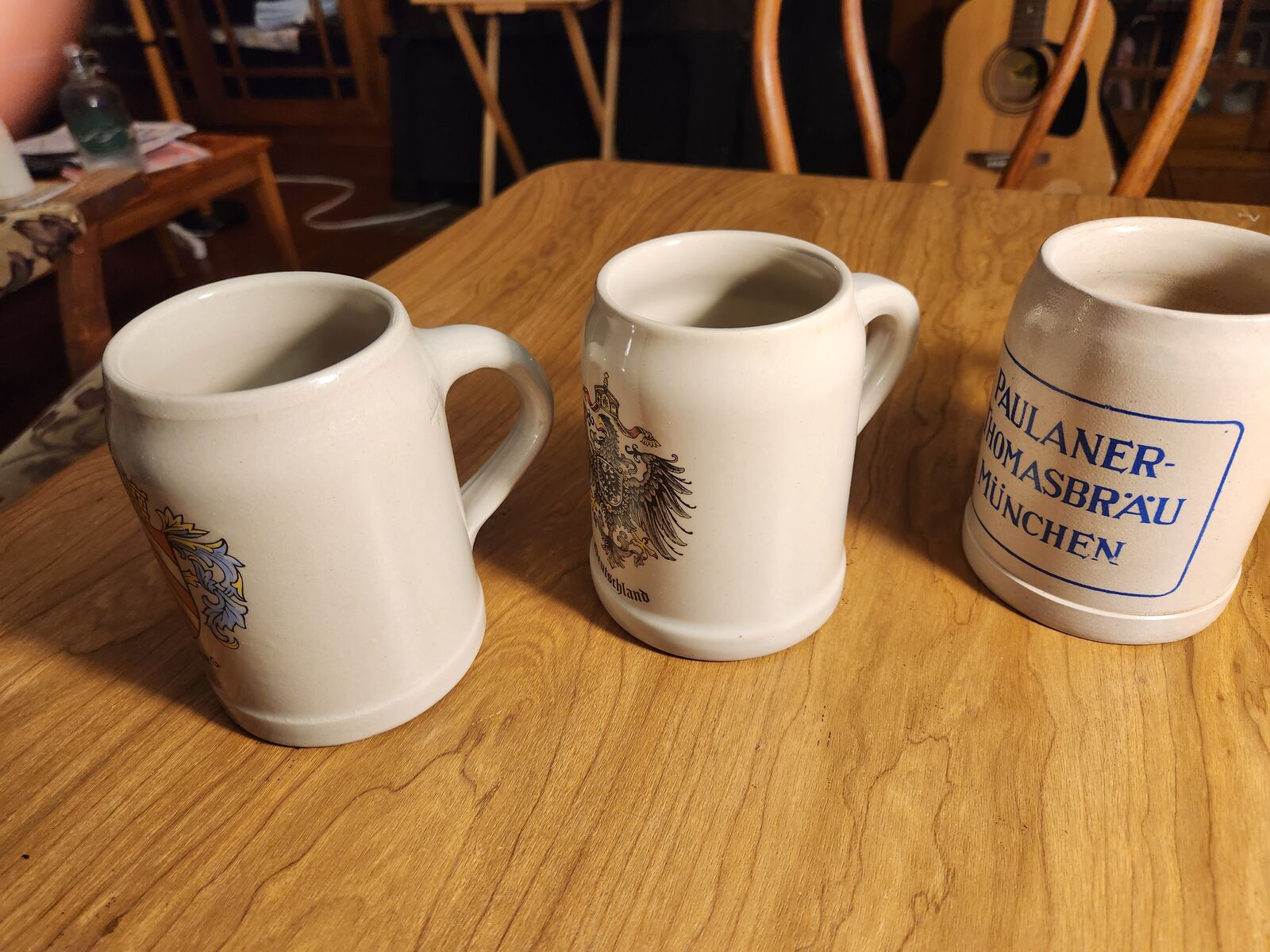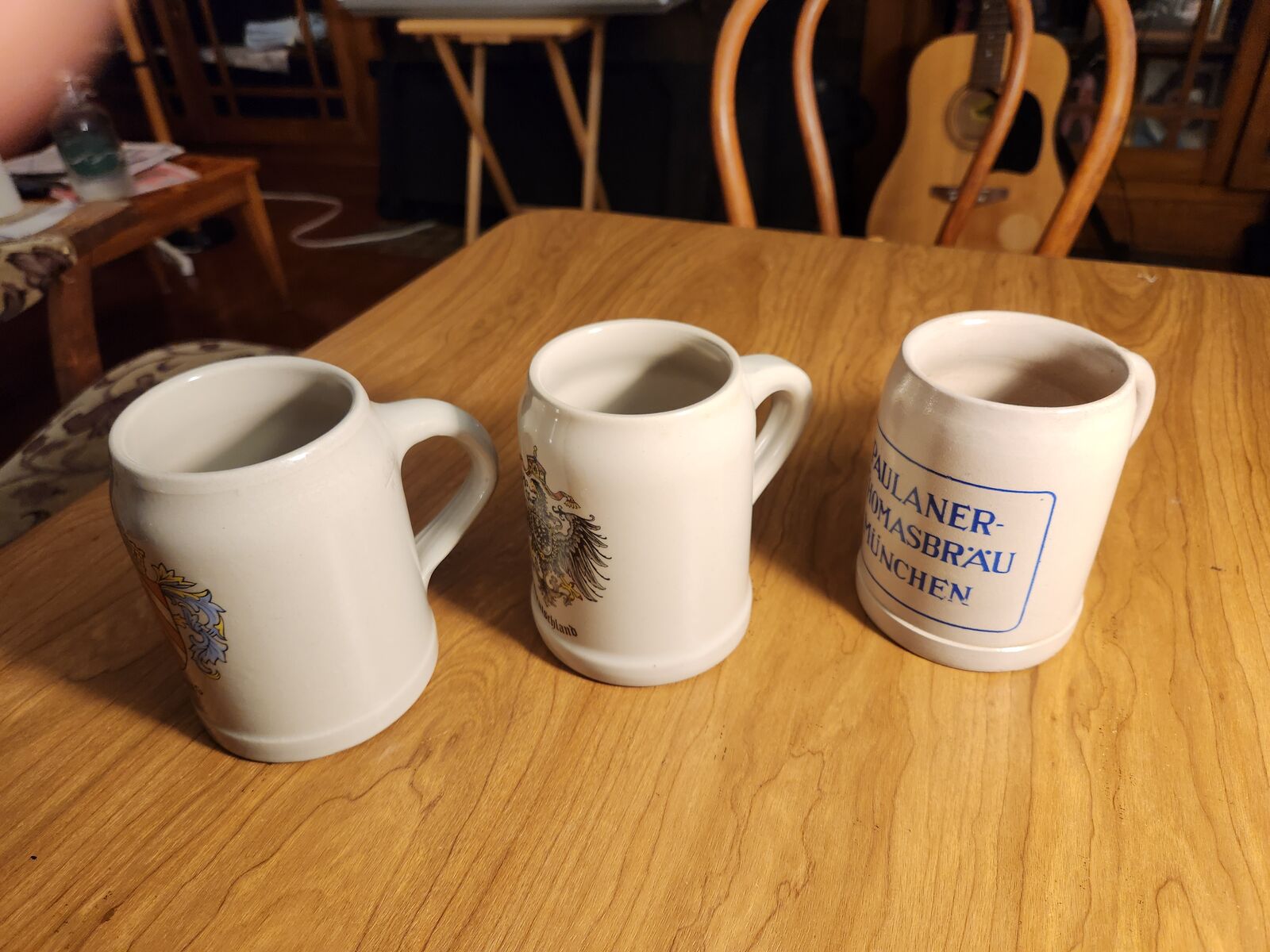 Three authentic German mugs. Perfect shape. Excellent mugs. Clean, no chips or wear. $20 for all three or $9 each.