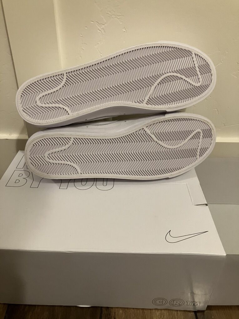Brand new white Nike shoes with original box. Never used, still with tags or packaging. White leather upper with white laces and rubber sole. Nike logo on the side and tongue. Comes with original box and packaging. Size 10.5