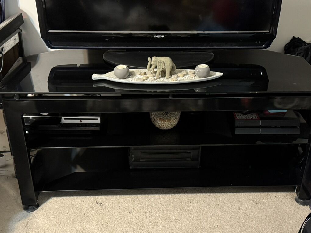 Black glass entertainment center. Nothing wrong with it. Asking $80 OBO!