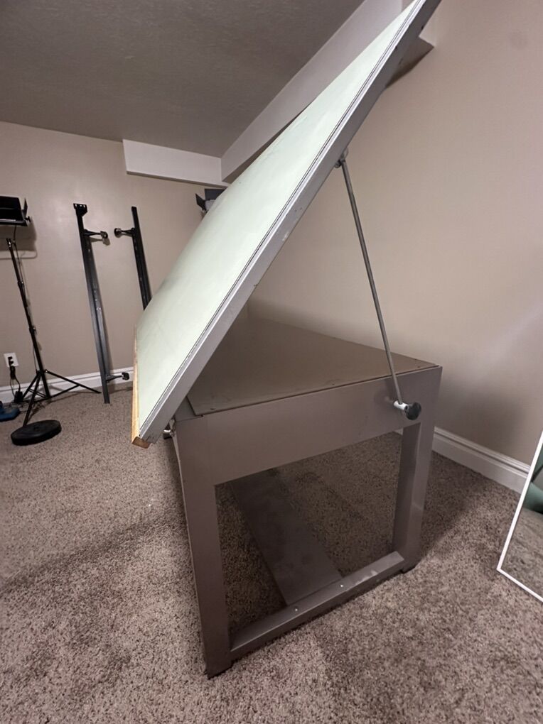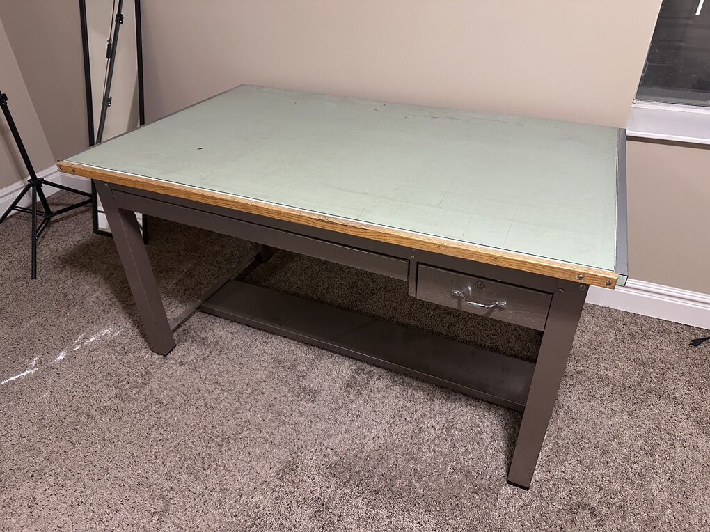 VenmoThis drafting table is heavy duty and in good condition. These drafting tables are $1500-$2500 brand new. Mine doesn’t get used anymore. It could be used as a nice, solid computer desk. Has 2 pull out drawers. Measures 38x60. Height is 32”.