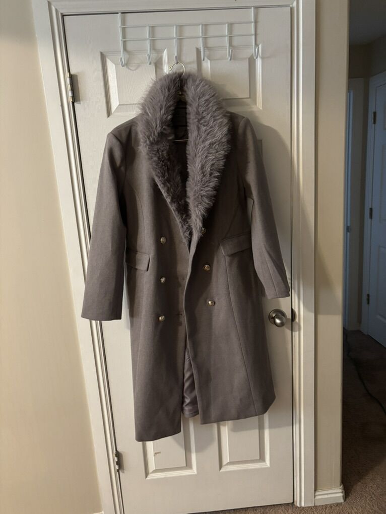 CashAppLong coat Fur collar Gray X-large but fits like a large Never worn New without tags