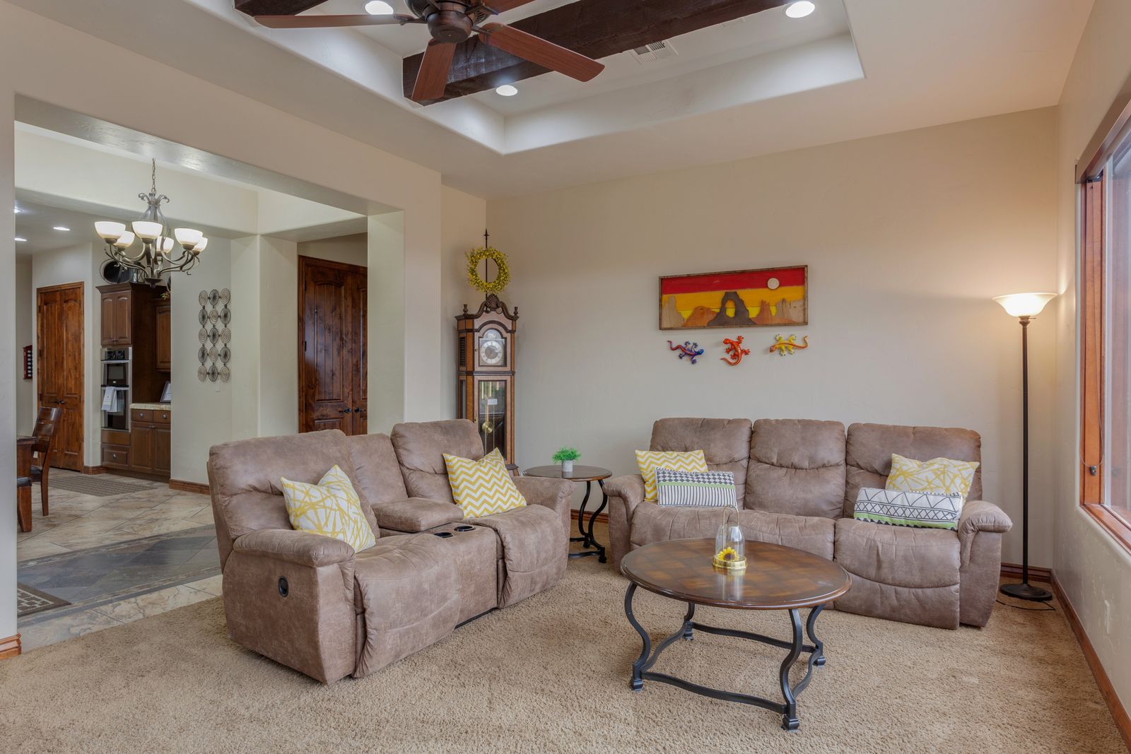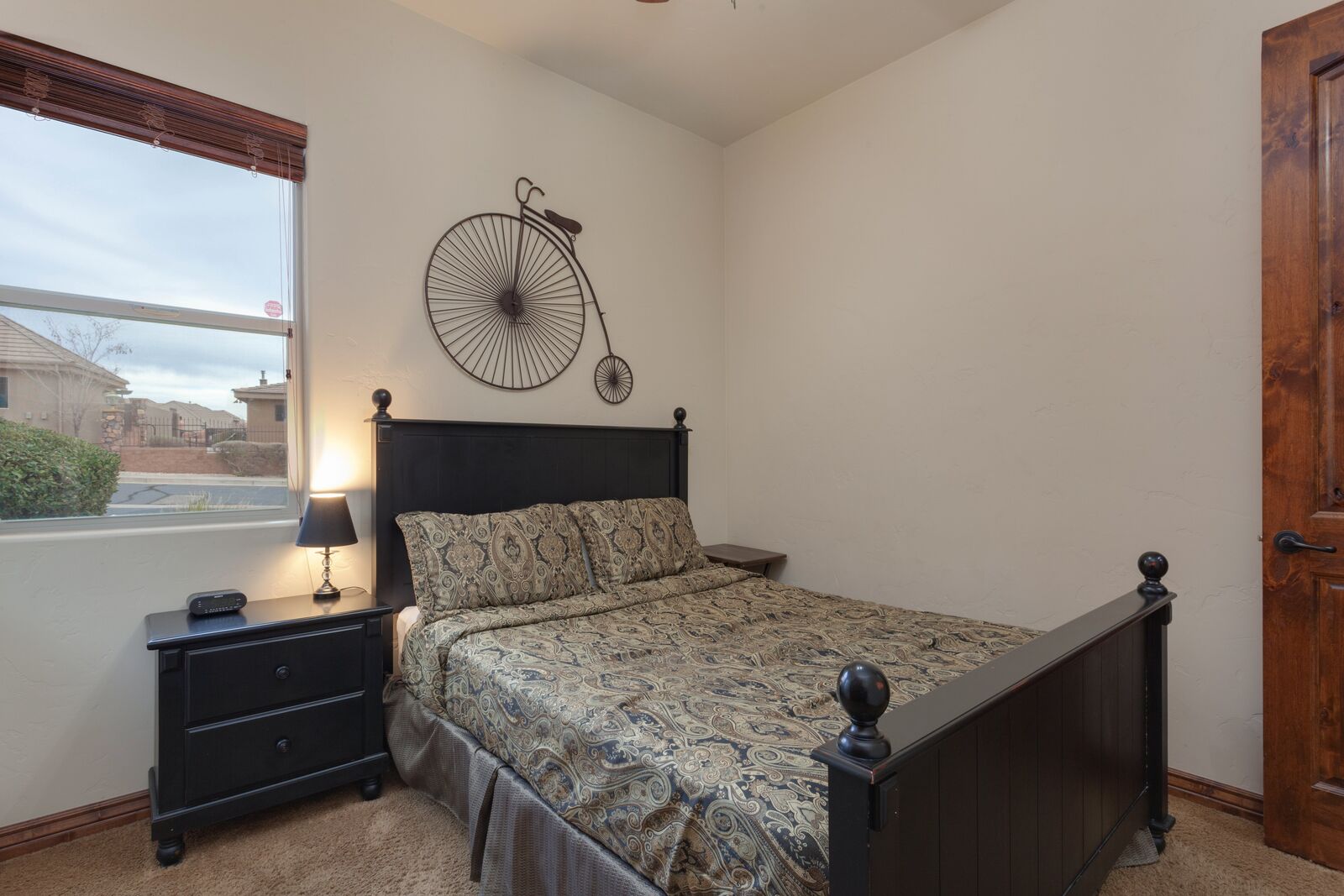 This beautiful 3 bedroom / 2 bath home can comfortably accommodate 6 guests or up to 8 guests with the assistance of a queen air mattress. Spend your days golfing at Coral Canyon Golf Course; enjoy 20% off from staying at Golfer’s Escape! If golfing is not your forte, take full advantage of being across the street from Coral Ridge amenities, and lounge by one of their two pools for the day. Enjoy barbecuing outback, while the kids play on the grass and the desert sunsets over Coral Canyon Golf Course. End your day with a family movie night in the living room, with a Smart TV and cable, your movie options are endless! Golfer’s and families alike will have the time of their lives at Golfer’s Escape.