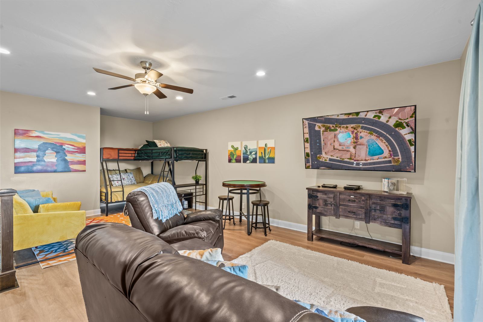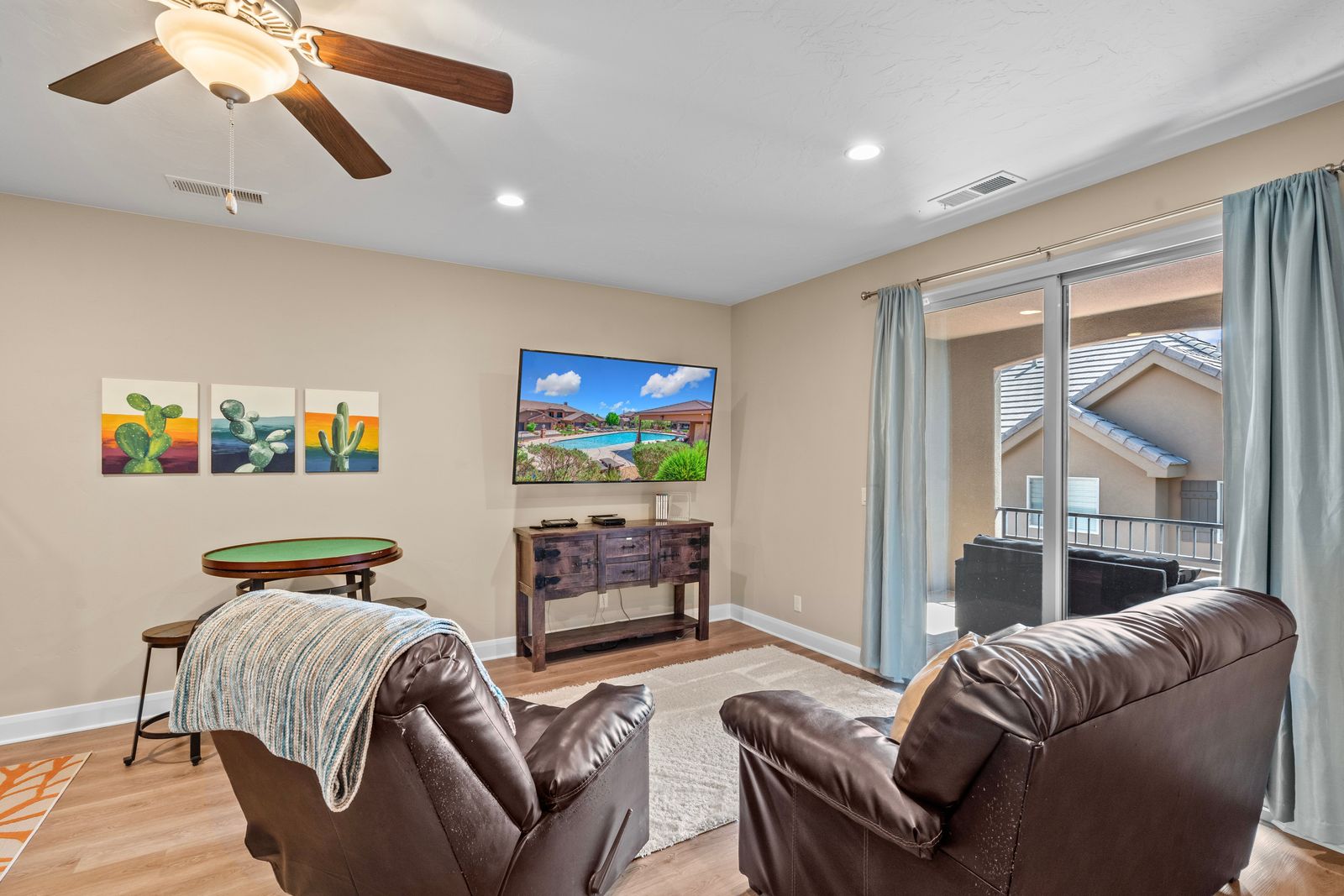 This amazing 3 bedroom / 3.5 bathroom townhome in Coral Ridge, can comfortably accommodate 14 guests. The kids will be easily occupied with a WiiU, board games, and Blu-ray movies. Entertain the whole family with a ping pong or air hockey tournament in the garage! Take full advantage of the Coral Ridge amenities and spend the day lounging at the community pool & spa. The Oasis is located in the ideal location to explore all that Southern Utah has to offer. Within a short drive of Zion National Park, Sand Hollow Reservoir, or Downtown St. George; you will never run out of things to do. Finish off the day relaxing at the Oasis in your private hot tub under the starry desert sky. The Oasis truly is a hidden desert gem. Whether you are hiking, staying home, or golfing; there is something to make every one of every age feel like they found their personal oasis.