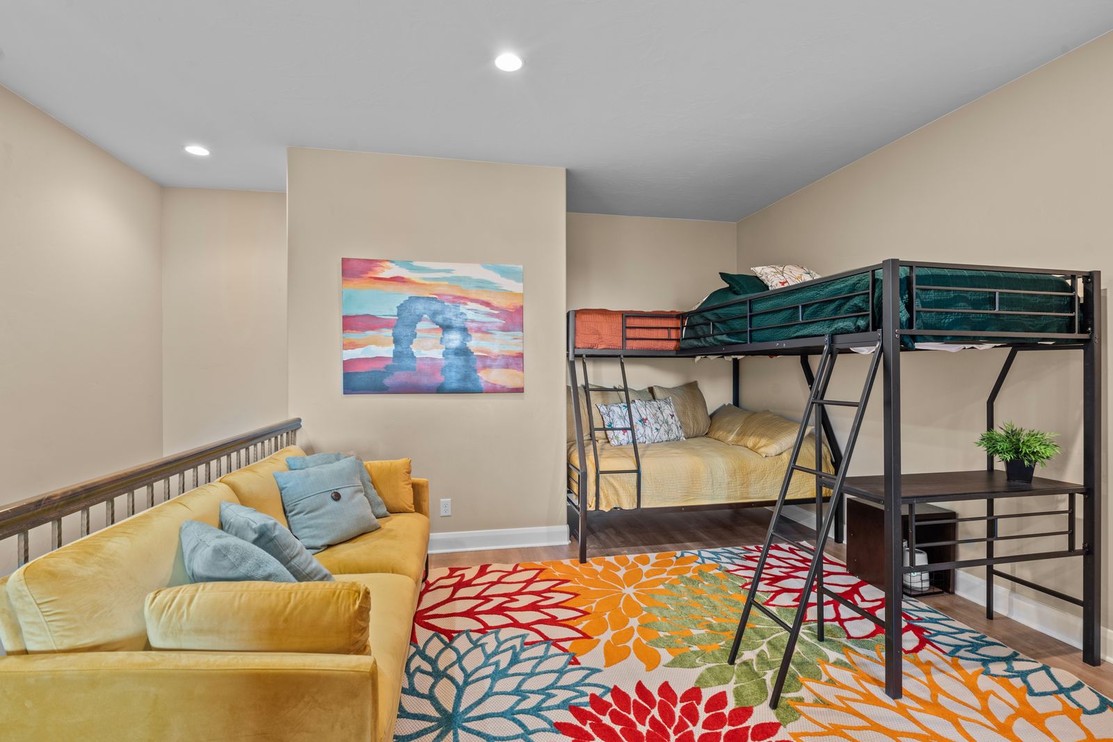 2 twin/twin bunk beds & 1 full bed in loft area