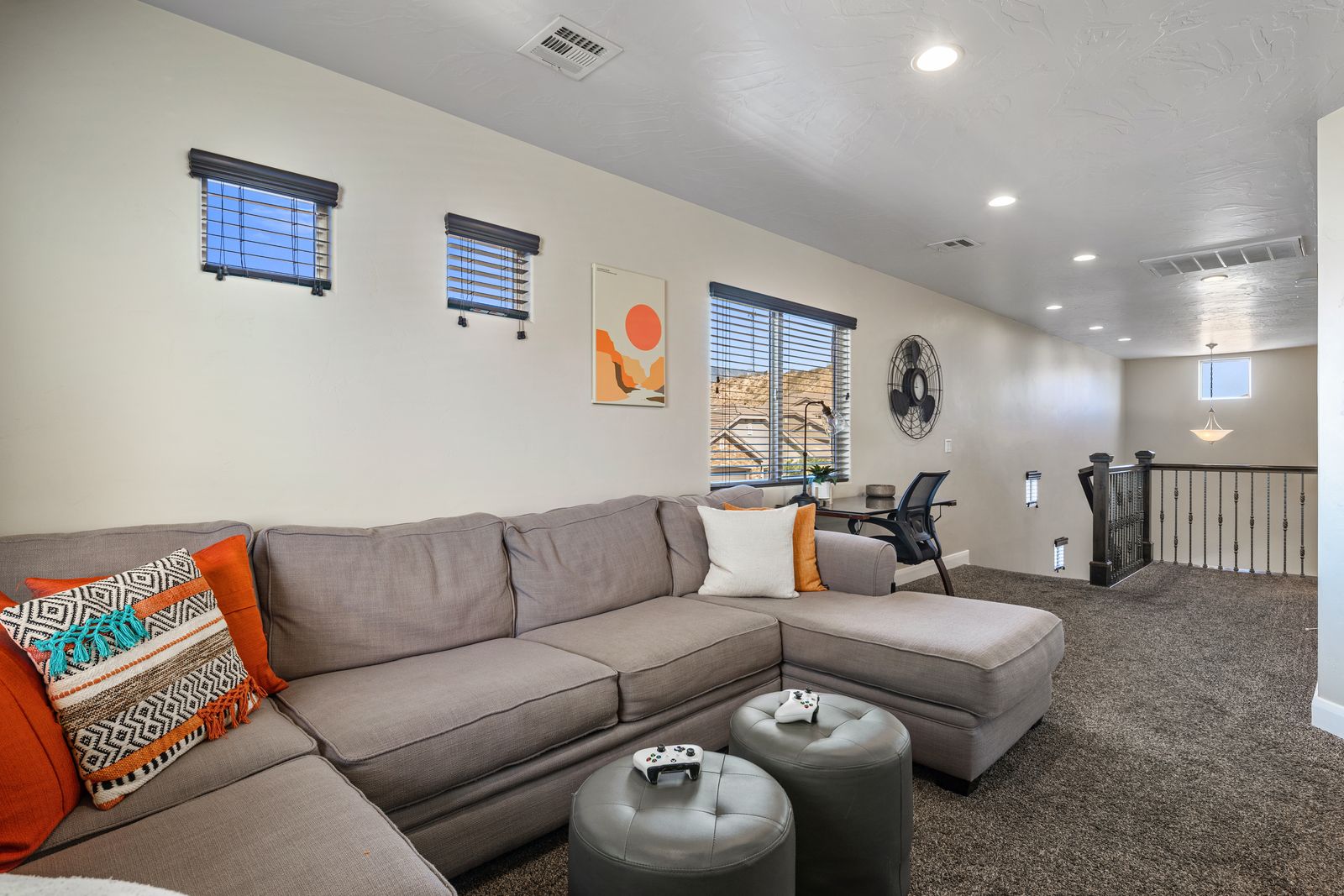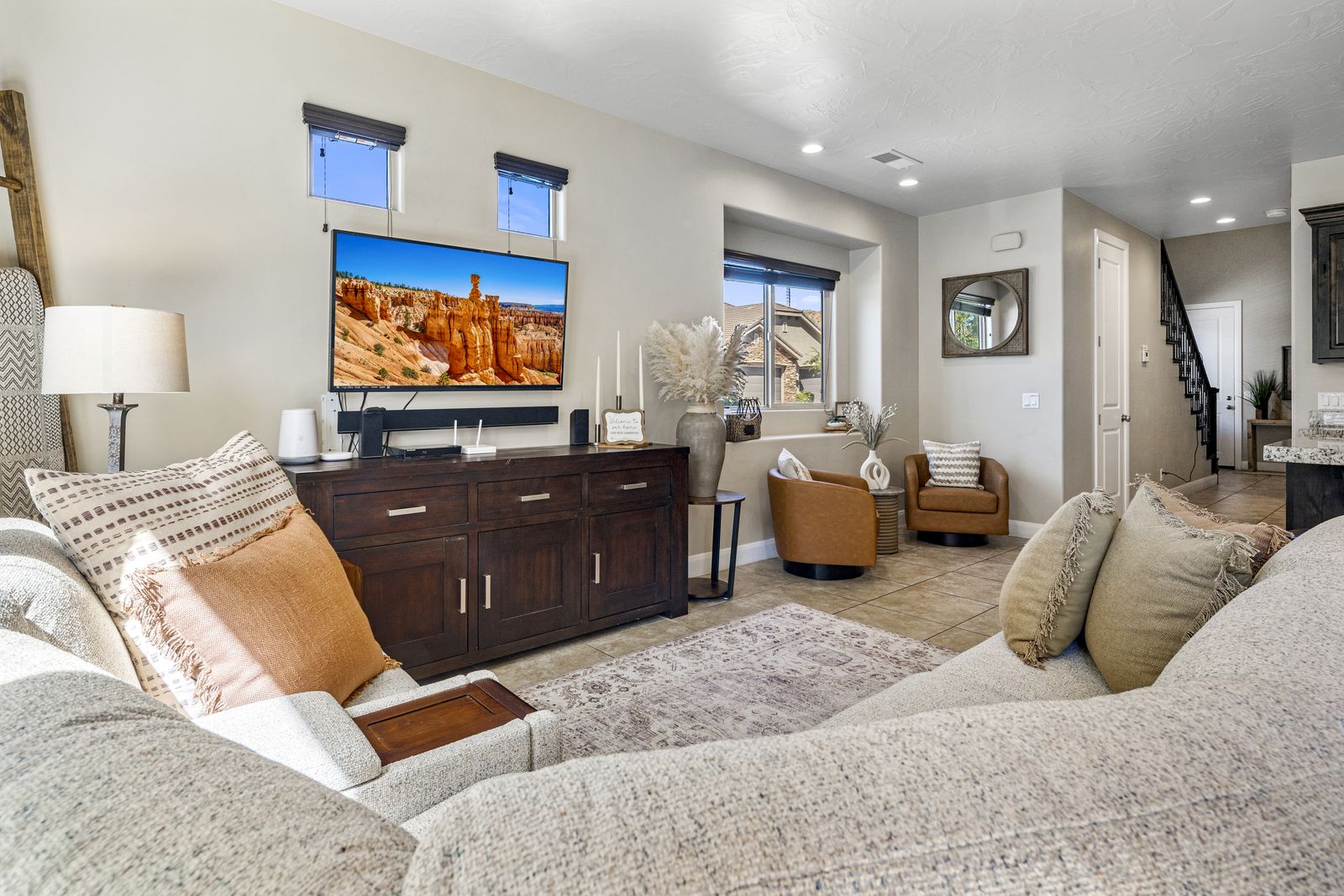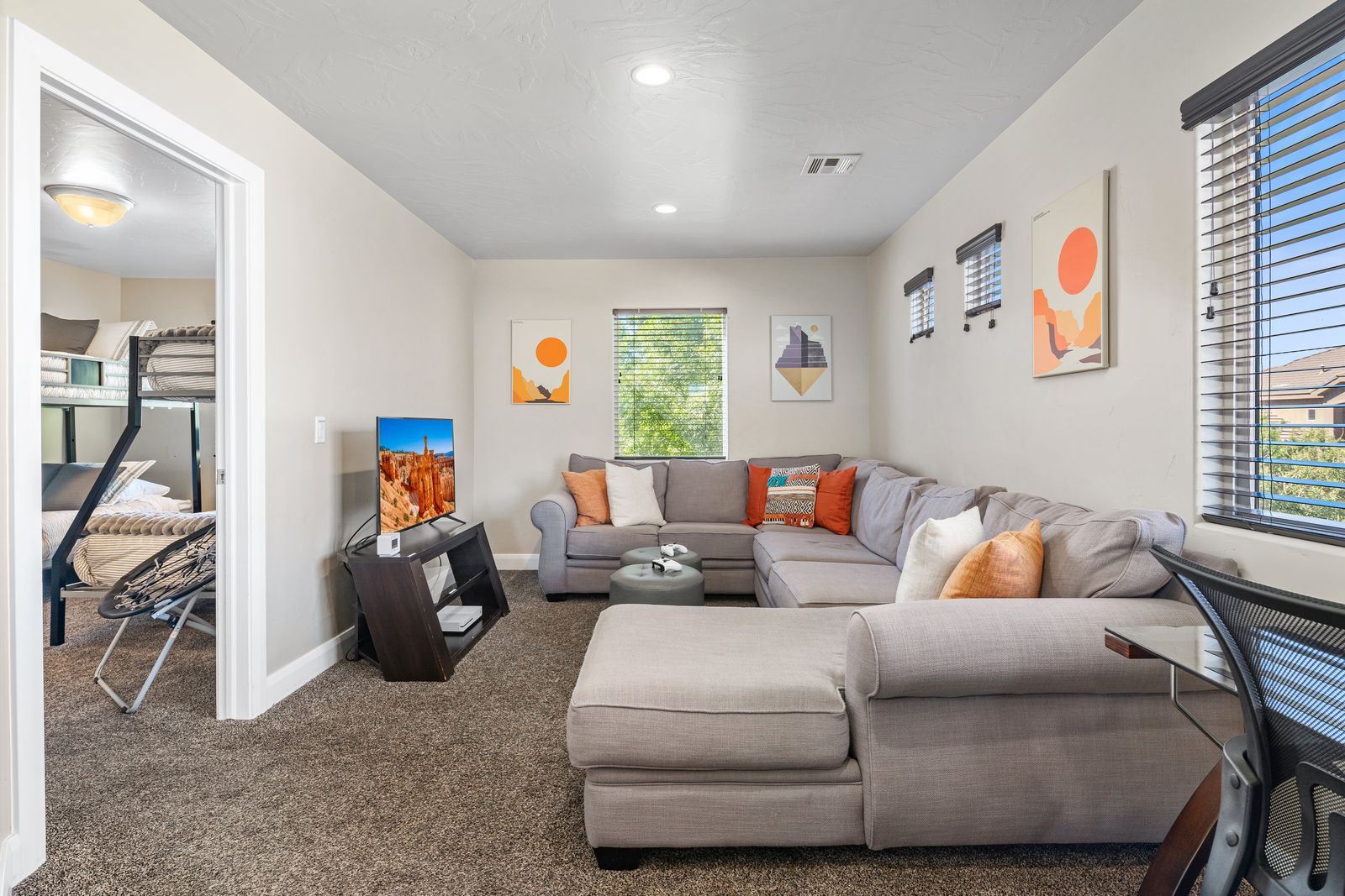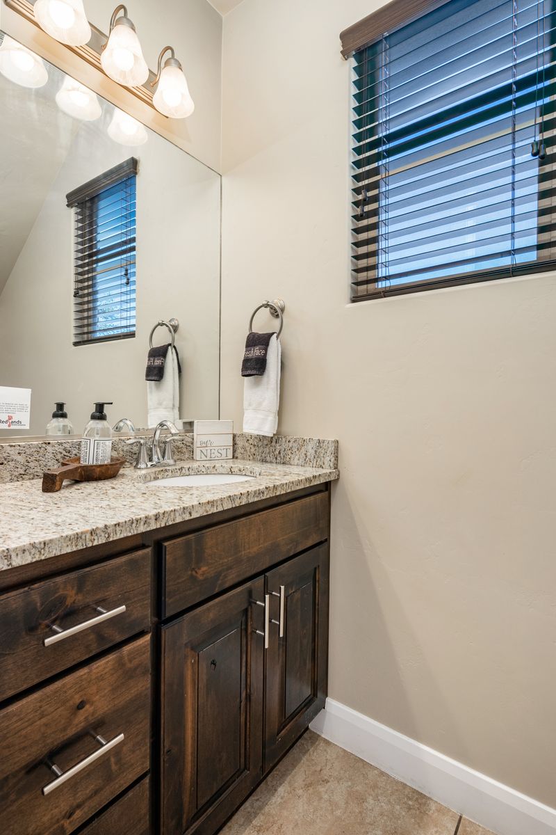 This modern 3 bedroom / 3.5 bath townhome can comfortably sleep 9 guests or up to 12 guests with the assistance of 1 twin and 1 queen air mattress. Enjoy the fresh air while riding bikes or scooters along one of the many walking/biking paths right out the front door! The kids will love grabbing the fishing poles from the garage and heading on down to Razor Ridge Park and Pond for an evening. Host a family game night with a ping pong tournament in the garage and the Xbox 1 upstairs! Wind down after a long day of activities, with a drink in hand, relaxing in your private hot tub, under the starry desert sky. With endless activities and the comfort of your own home, Casa Redrock will give you timeless memories.