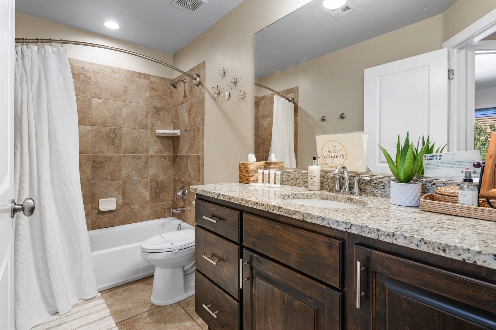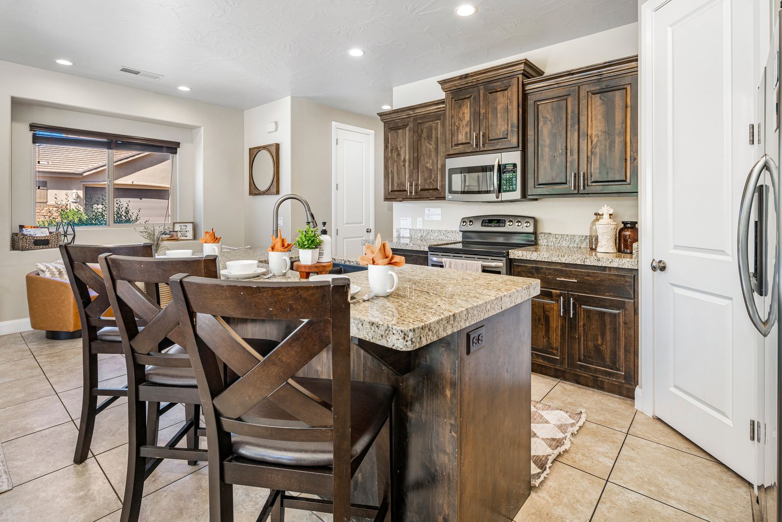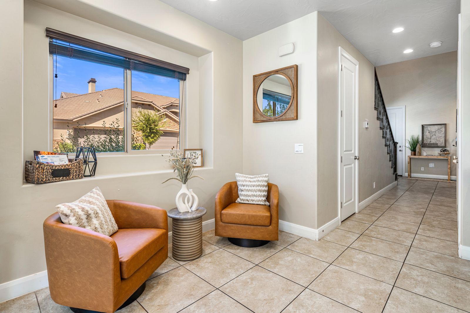This modern 3 bedroom / 3.5 bath townhome can comfortably sleep 9 guests or up to 12 guests with the assistance of 1 twin and 1 queen air mattress. Enjoy the fresh air while riding bikes or scooters along one of the many walking/biking paths right out the front door! The kids will love grabbing the fishing poles from the garage and heading on down to Razor Ridge Park and Pond for an evening. Host a family game night with a ping pong tournament in the garage and the Xbox 1 upstairs! Wind down after a long day of activities, with a drink in hand, relaxing in your private hot tub, under the starry desert sky. With endless activities and the comfort of your own home, Casa Redrock will give you timeless memories.
