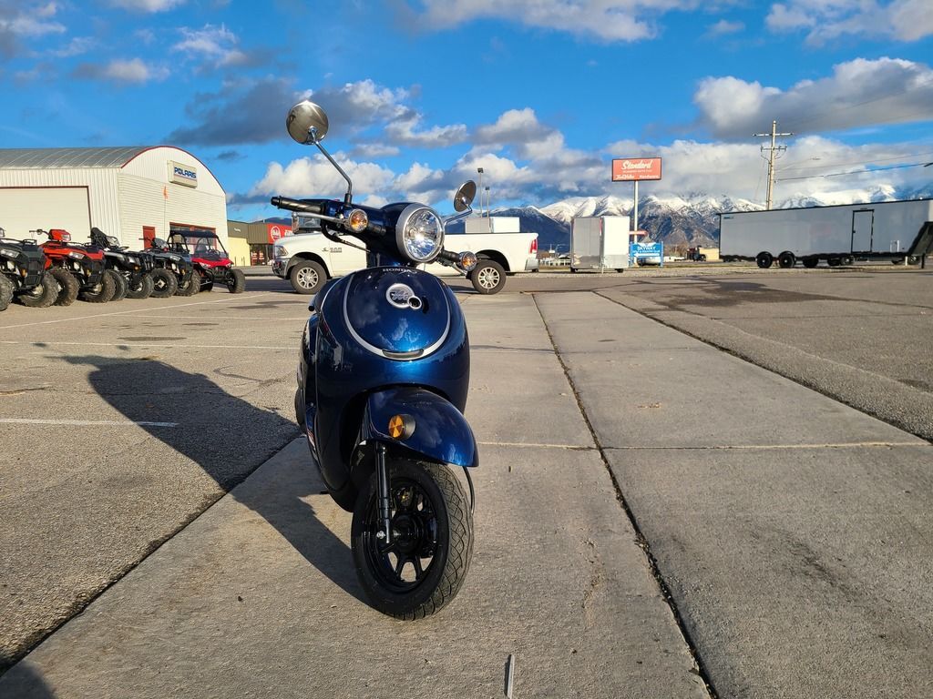 The scooter's intelligent design features a sleek and stylish instrument panel, perfectly aligning with its retro-meets-modern overall aesthetic.