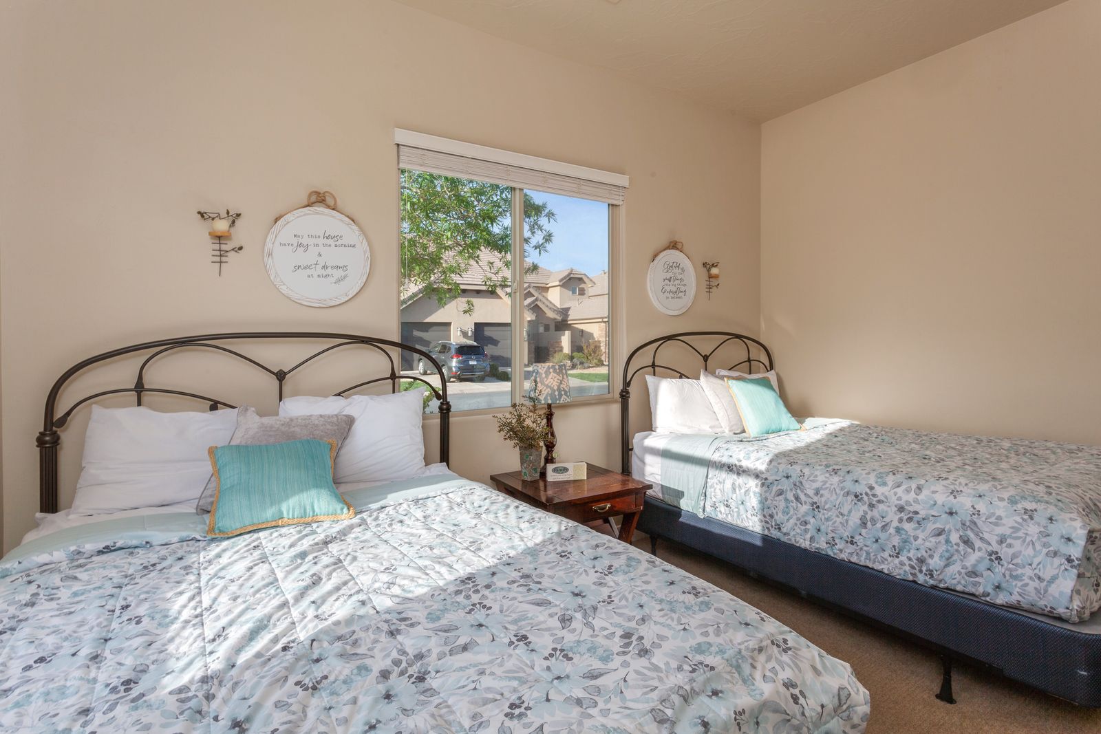 This 3 bedroom / 2 bath townhome can comfortably accommodate 8 guests or up to 10 with the assistance of a queen air mattress. Surrounded by Southern Utah’s beautiful mountains, you will never run out of things to do. Take a trip to Zion National Park or Sand hollow reservoir. Spend your day lounging by one of the two pools or challenging each other to games at the Coral Springs Clubhouse. In the evening, pour yourself a drink and relax on your back patio while barbequing under the setting desert sun. Movie nights have never been easier, with a Smart TV the movie options are endless! No matter how you spend your days, you are sure to be swept away in relaxation and memorable experiences while staying at Dixie’s Inn!