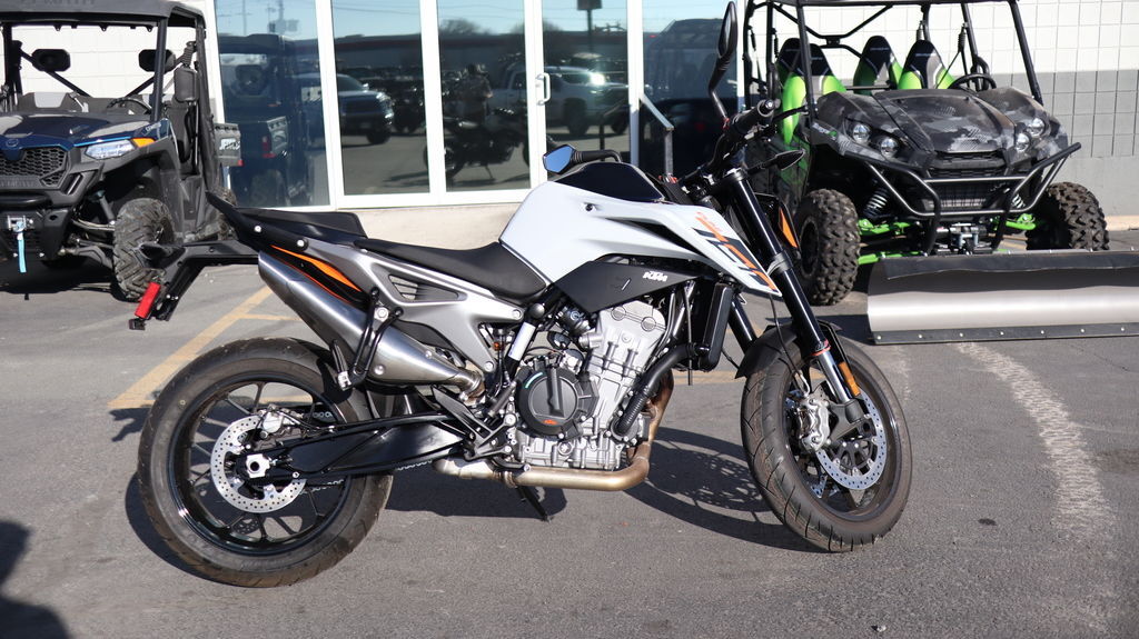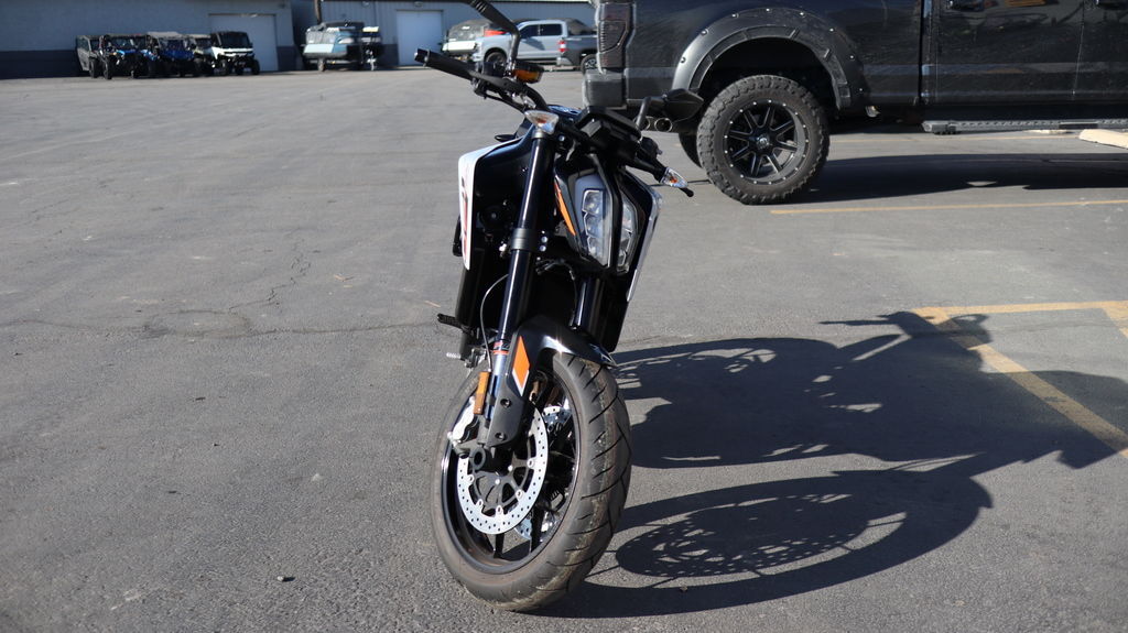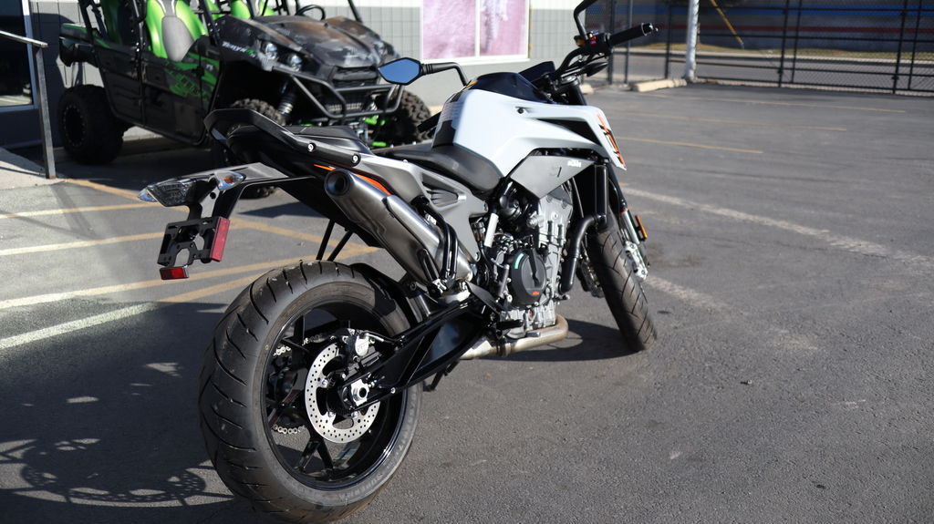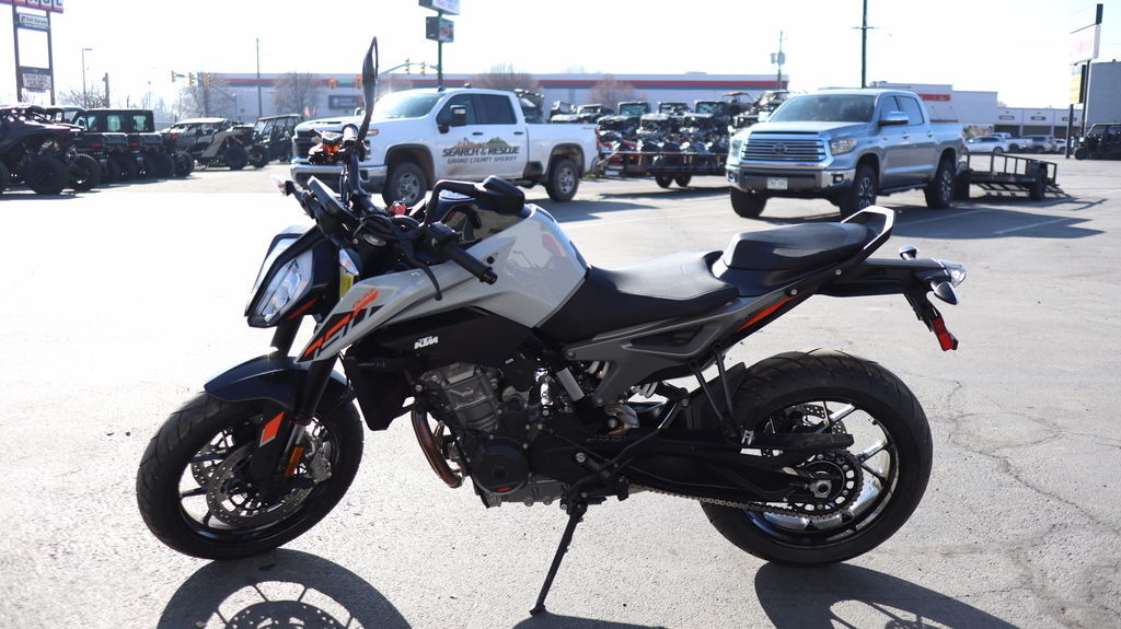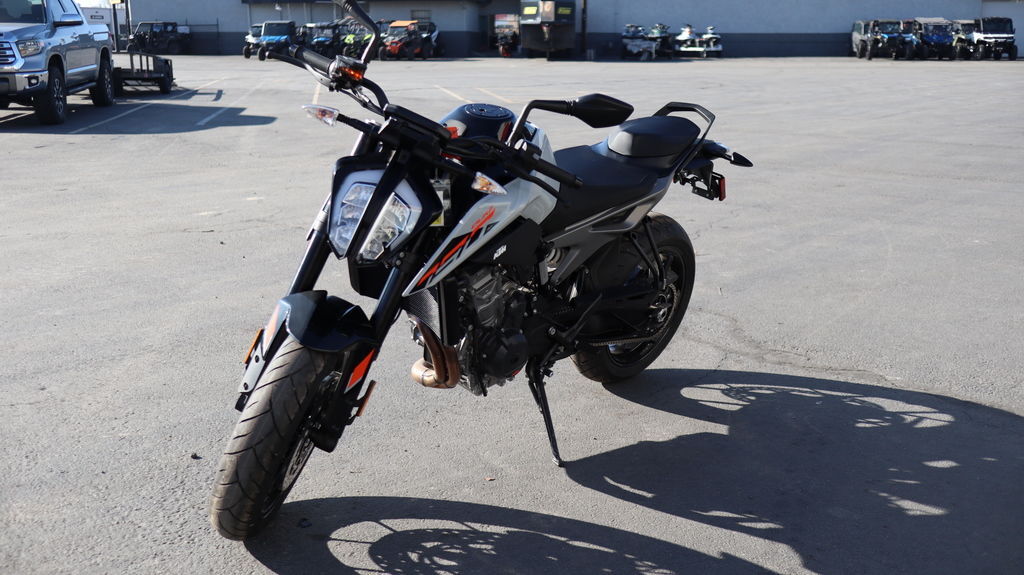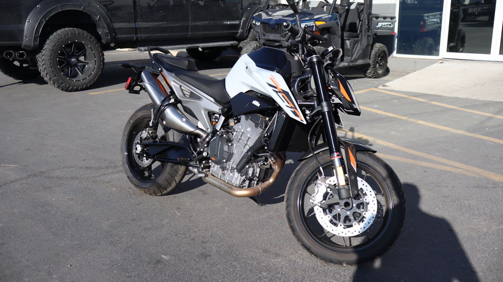 2023 KTM 790 Duke THE SCALPEL The KTM 790 DUKE is as surgical as its nickname suggests. With the agility you'd expect from a single, combined with the hard-hitting punch of a twin, the KTM 790 DUKE slices up the road with pinpoint precision. With a 799 cc LC8c parallel twin motor - the most compact in its class - nestled into one of the lightest frames around, the KTM 790 DUKE is all about being fast everywhere, with the corners being its playground. Features may include: ENGINE & EXHAUST Engine Built for torque, this liquid cooled 8 valve, DOHC unit delivers peak grunt at 8,000 rpm that is almost immediately followed by a roaring power curve. Meanwhile, an advanced ride-by-wire system guarantees great refinement as well as low fuel consumption and emission figures. CHASSIS Frame The incredible handling characteristics of the KTM 790 DUKE are founded on the dynamic, loadbearing design of the tubular chassis. Engineers had one goal in mind, and that was to keep the chassis as rigid and compact as possible, which allows for sharper turn-in and greater lean angles, allowing it to slice through the turns with extreme responsiveness. ERGONOMICS & COMFORT Handlebar A tapered aluminum, 810 mm wide handlebar puts you in full control. Adjustable in 4 positions on the triple clamp, which can also be rotated by a further three positions, it allows for that perfect riding position. BODYWORK & GRAPHICS TFT dashboard A multicolor combination of relevant information, presented in an uncluttered way. As you rev the engine, the display bars change color, either spurring you on or warning you that the engine's still cold. The display also automatically adapts its illumination to the ambient light and gets racy when the optional TRACK MODE is selected.