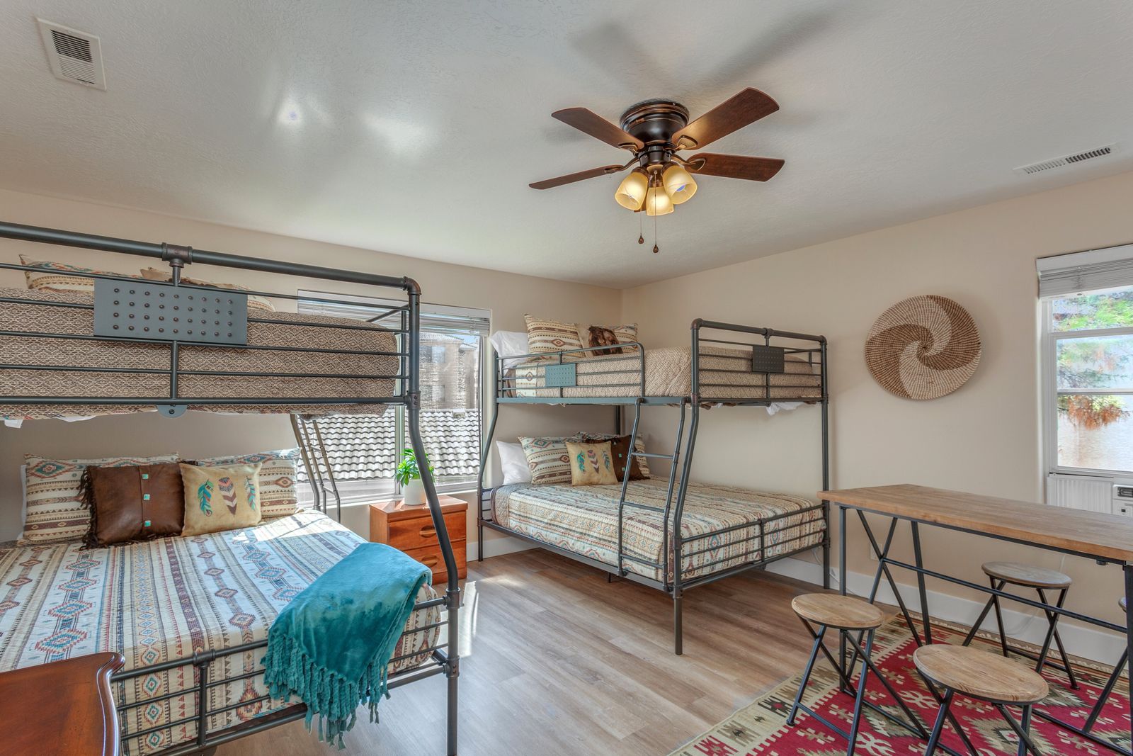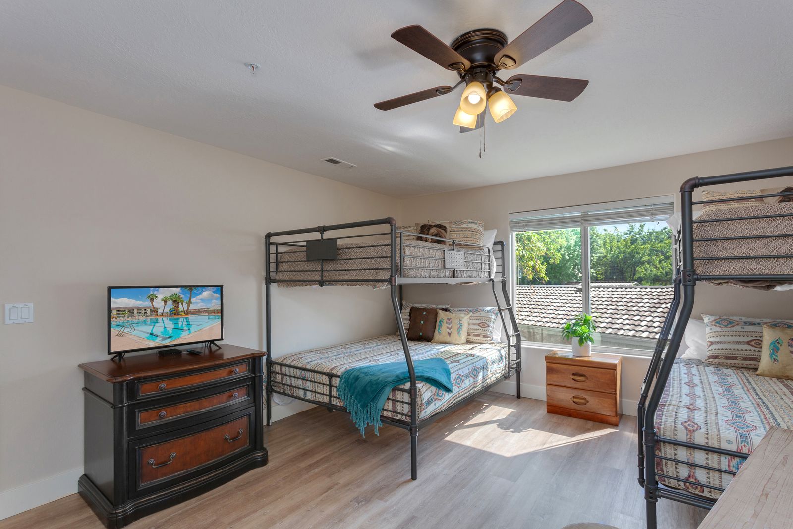 Bedroom 3: 2 Double over Queen Bunk Beds with a TV - Shared Bathroom
