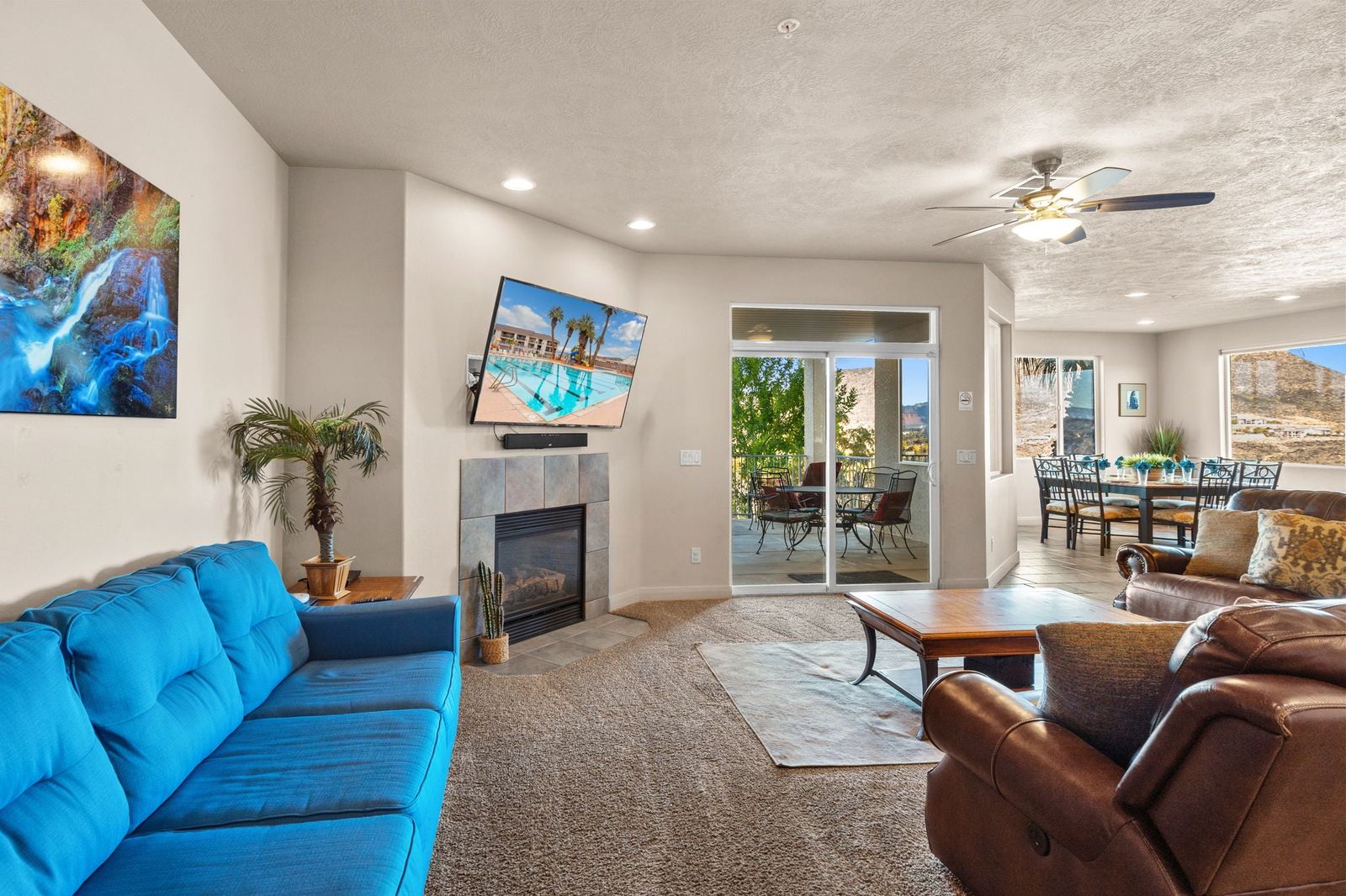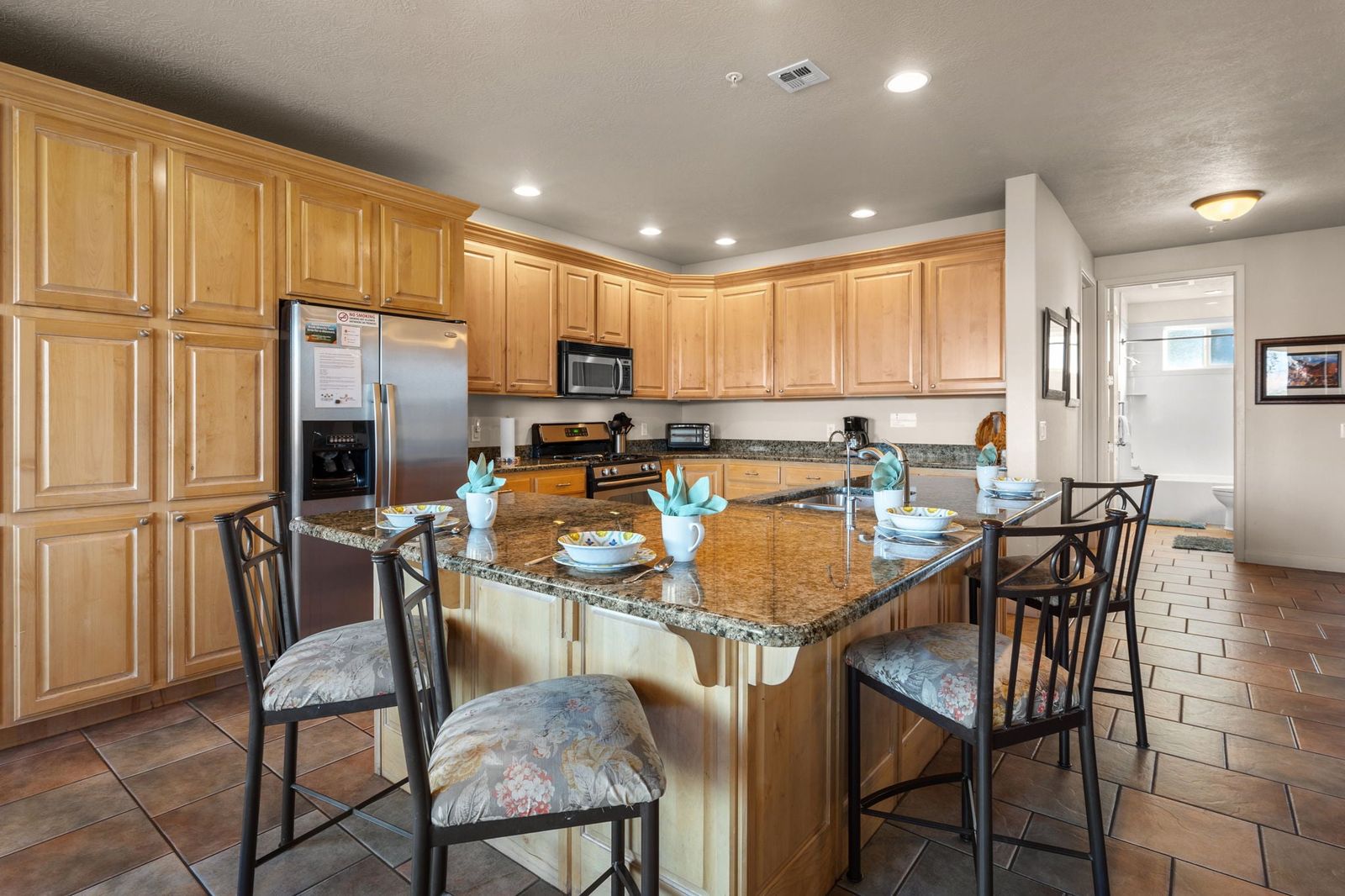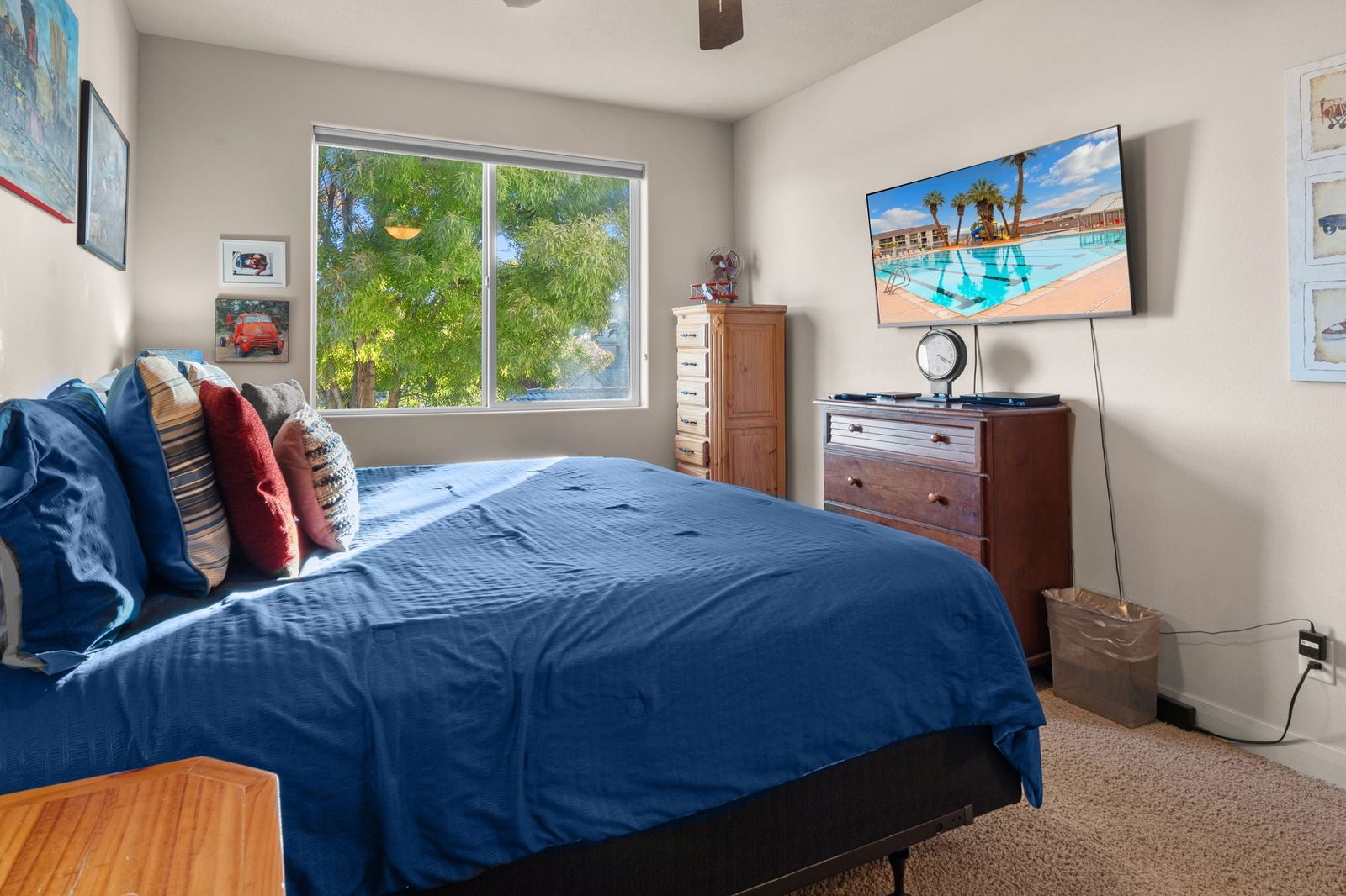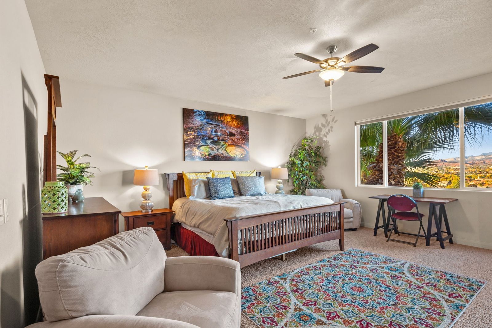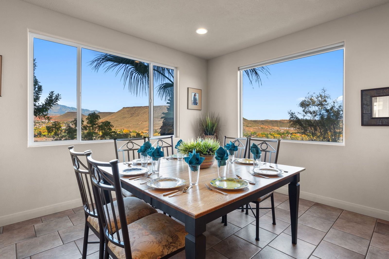 Red Rock View is the perfect condo for family and friend getaways! This 4 bedroom / 3 bath comfortably sleeps 12 guests; however, it can sleep up to 18 guests with the assistance of a king air mattress, 2 twin foam mats, and a queen hide-a-bed. Mornings will quickly become your favorite time of day at Red Rock View, as you sip a hot cup of coffee and watch the desert sun rise up over the mountains on the patio. After a quiet morning alone, head out on a quick adventure! Multiple National and State parks are a short drive away, or Downtown St. George is always a great place to shop and have lunch. Come back to Red Rock View for the afternoon and lounge poolside under the palms at one of the outdoor pools. The kids will love being able to swim, splash around in the splash pad, and play many outdoor games offered by Las Palmas; you might not get them to come back inside! Wrap up the day barbequing on the back patio, enjoying each other's company, and watching the sun set over town. After a long day in the sun, make a bowl of popcorn and settle in for good movie in the living room; with a Smart TV, finding a movie everyone can agree on has never been easier. Whether you are lounging by the pool, exploring southern Utah, or taking in the extravagant views; you will be making timeless memories staying at Red Rock View!