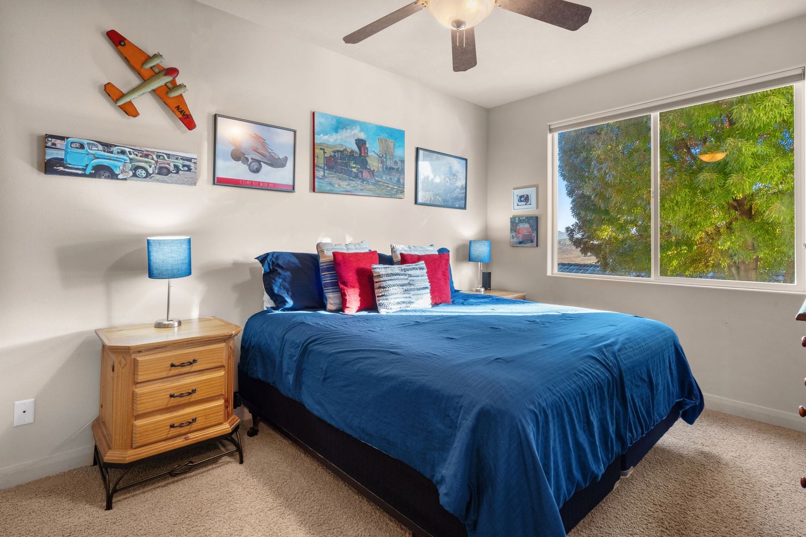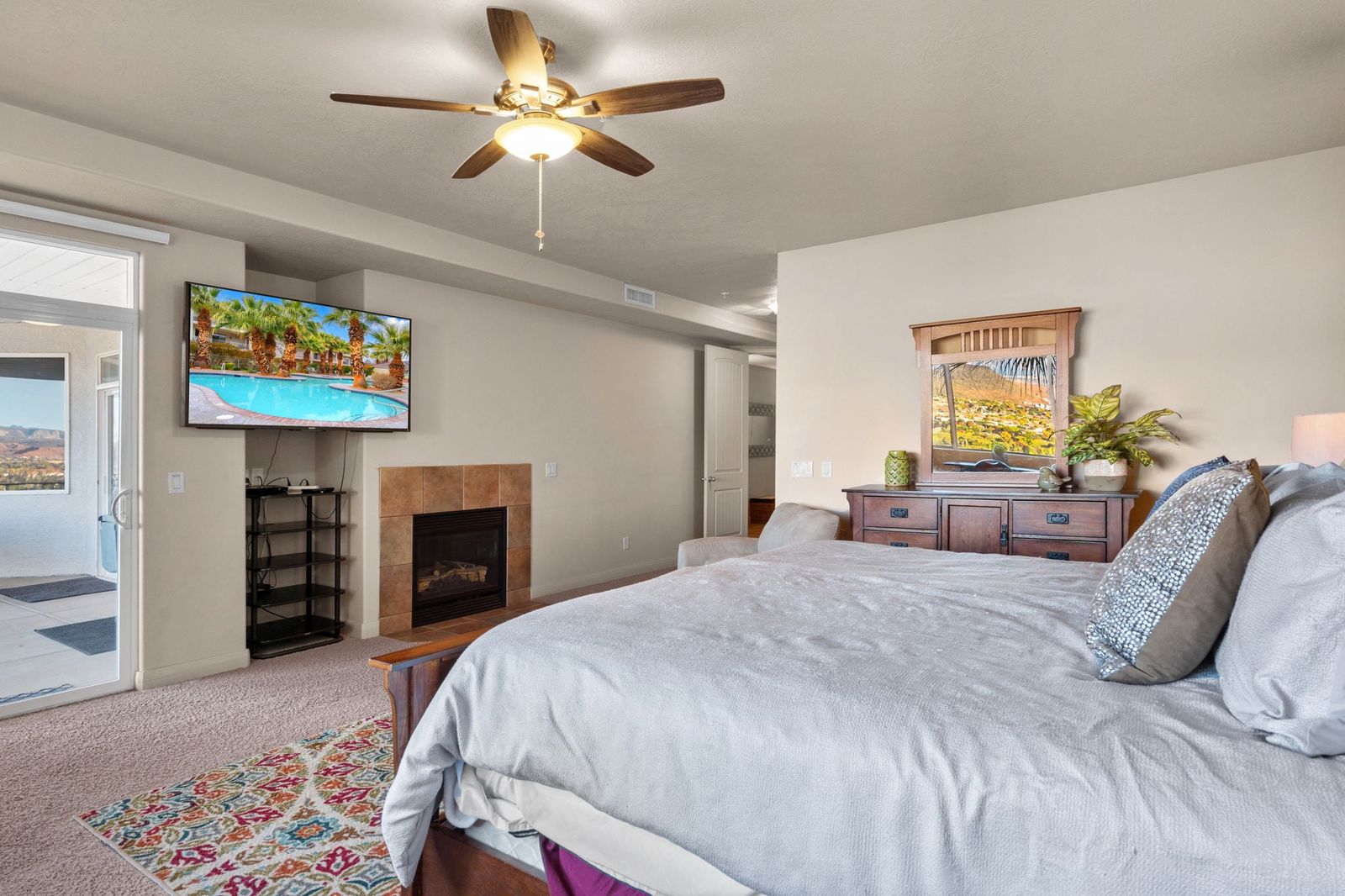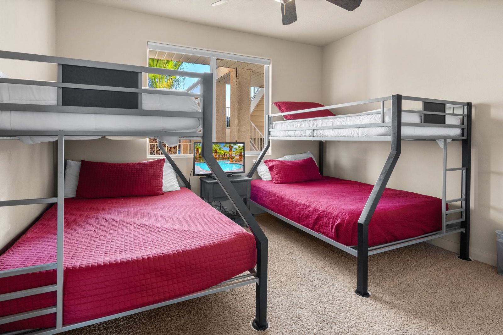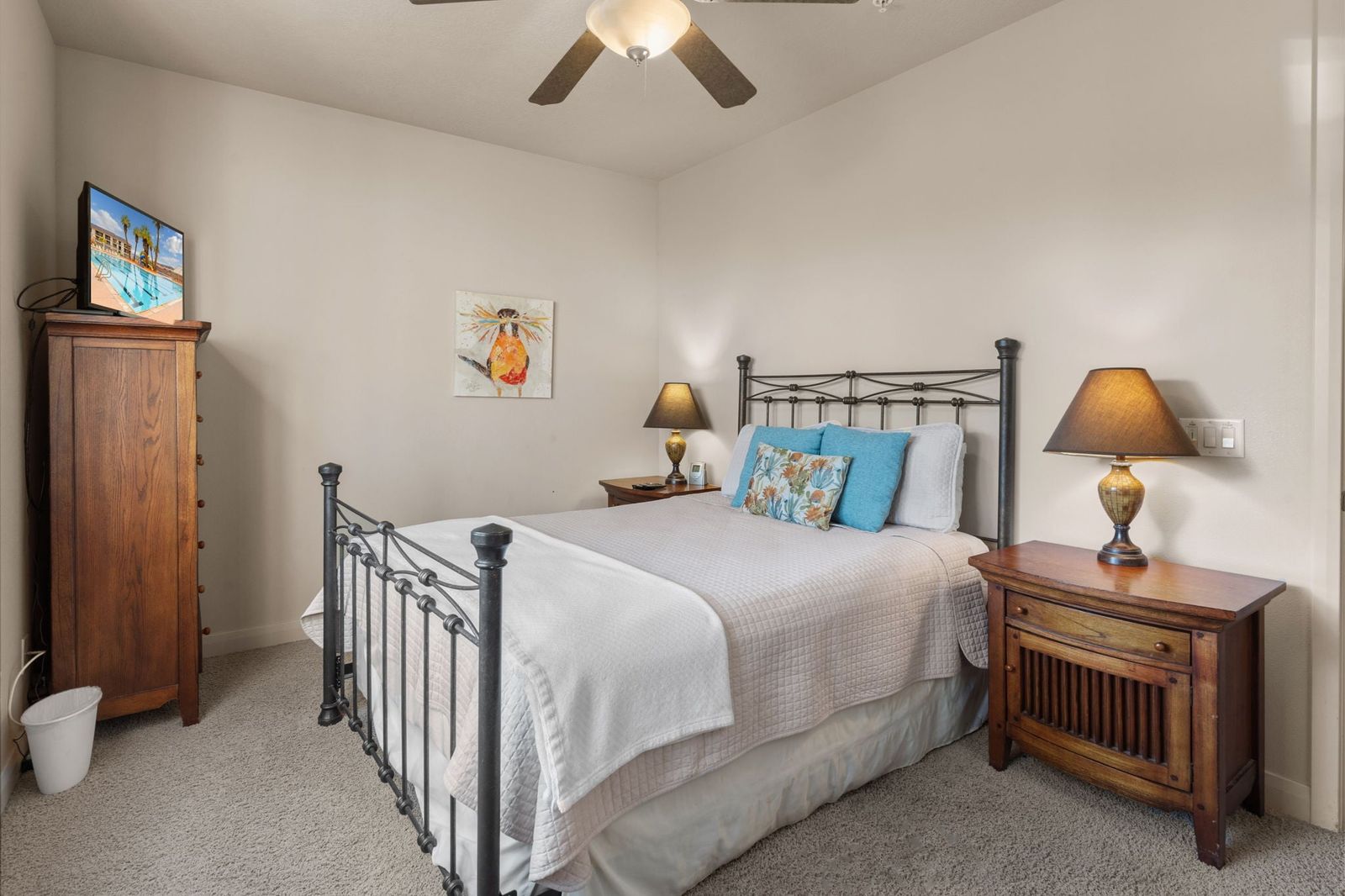 Red Rock View is the perfect condo for family and friend getaways! This 4 bedroom / 3 bath comfortably sleeps 12 guests; however, it can sleep up to 18 guests with the assistance of a king air mattress, 2 twin foam mats, and a queen hide-a-bed. Mornings will quickly become your favorite time of day at Red Rock View, as you sip a hot cup of coffee and watch the desert sun rise up over the mountains on the patio. After a quiet morning alone, head out on a quick adventure! Multiple National and State parks are a short drive away, or Downtown St. George is always a great place to shop and have lunch. Come back to Red Rock View for the afternoon and lounge poolside under the palms at one of the outdoor pools. The kids will love being able to swim, splash around in the splash pad, and play many outdoor games offered by Las Palmas; you might not get them to come back inside! Wrap up the day barbequing on the back patio, enjoying each other's company, and watching the sun set over town. After a long day in the sun, make a bowl of popcorn and settle in for good movie in the living room; with a Smart TV, finding a movie everyone can agree on has never been easier. Whether you are lounging by the pool, exploring southern Utah, or taking in the extravagant views; you will be making timeless memories staying at Red Rock View!