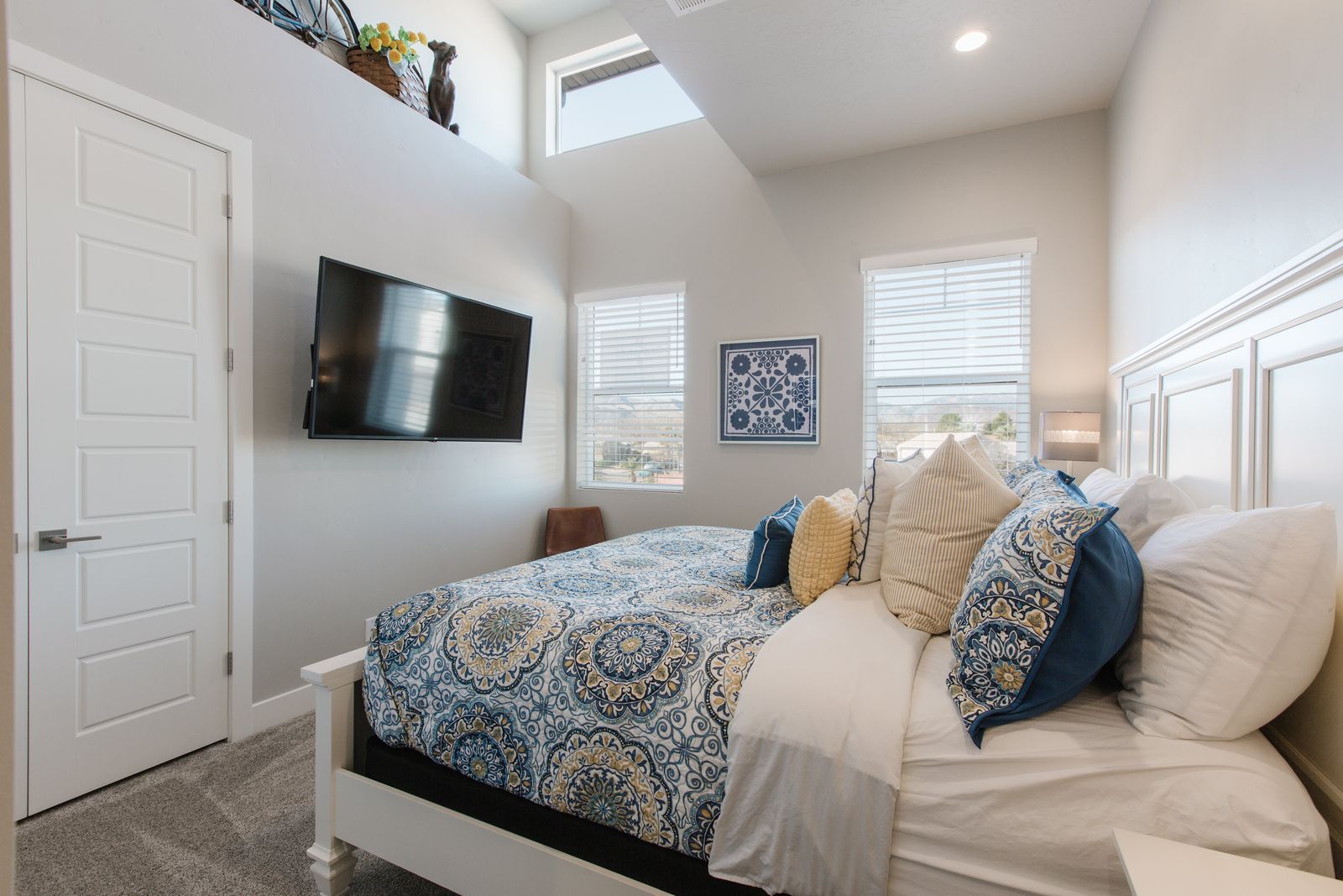 This modern 3 bedroom / 3.5 bath is the perfect southern Utah getaway. Happy trails can comfortably sleep up to 9 guests. In the mornings, enjoy a cup of coffee while watching a spectacular sunrise from the private balcony. Spend your days exploring all southern Utah has to offer! Snow Canyon State Park and Gunlock reservoir are both just a short drive away, perfect for a day trip. Take advantage of the resort-style pool that Ocotillo Springs offers or walk/bike along one of the many paths right out your front door! Back at home, enjoy a cold drink while barbequing out on the back patio. Challenge each other to games on the PS4 or make a bowl of popcorn and settle in for a movie night. After a long day exploring Southern Utah, relax your tired muscles in your own private hot tub under a sky lit up with stars. No matter how you spend your time, it is sure to be filled with Happy Trails!