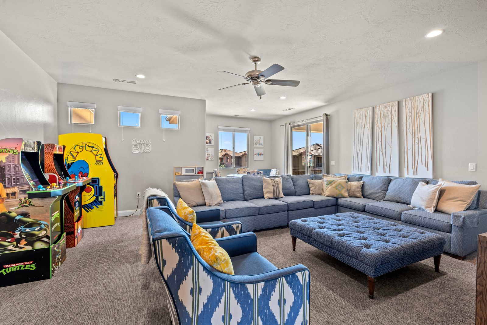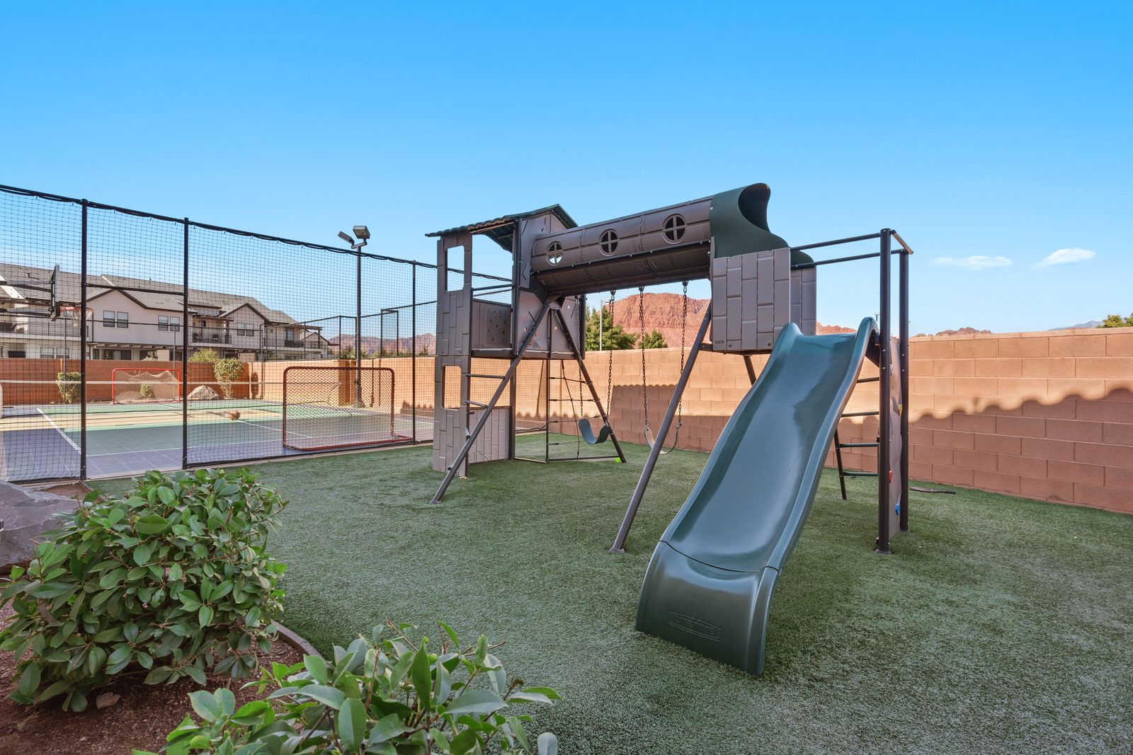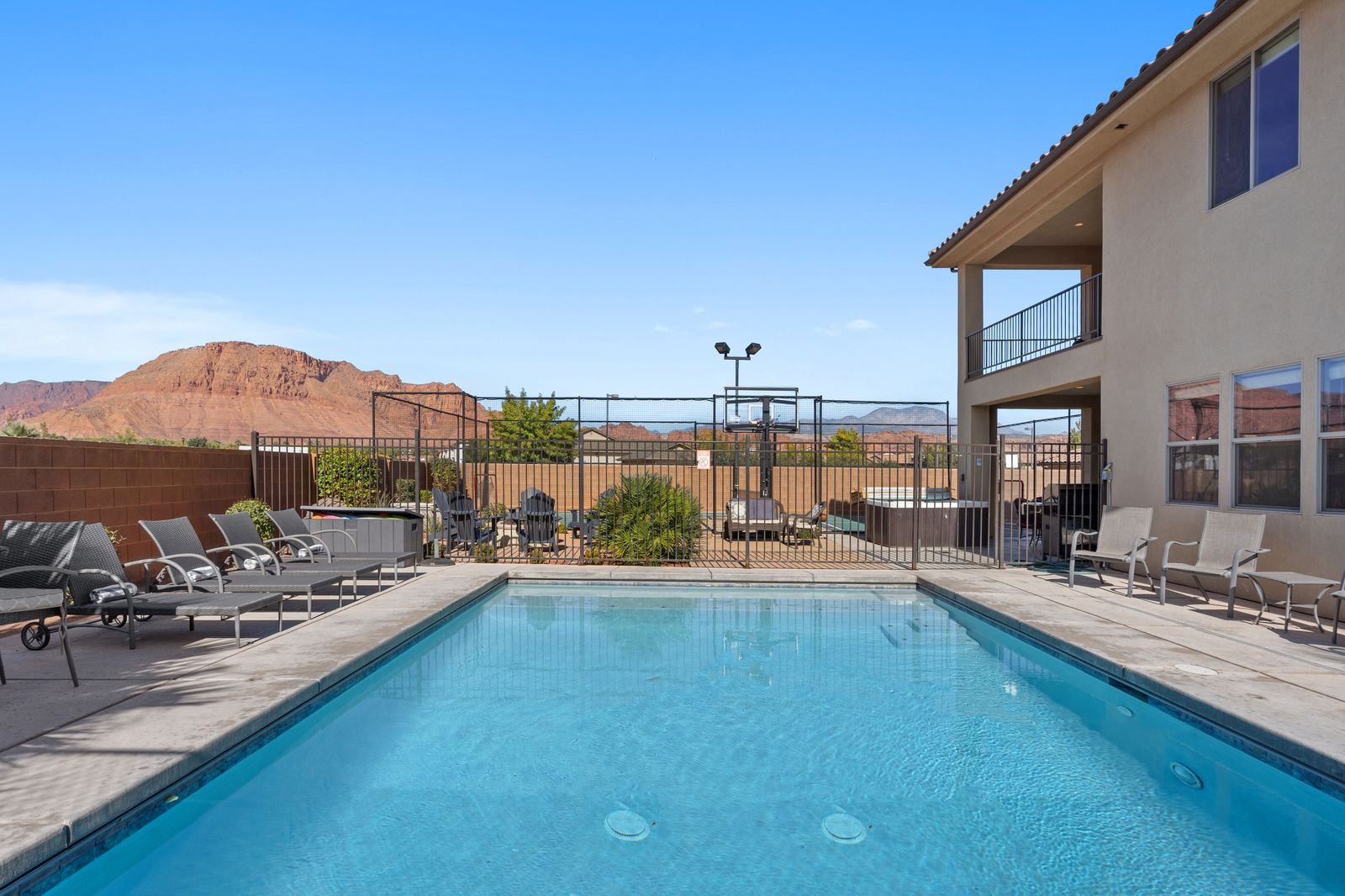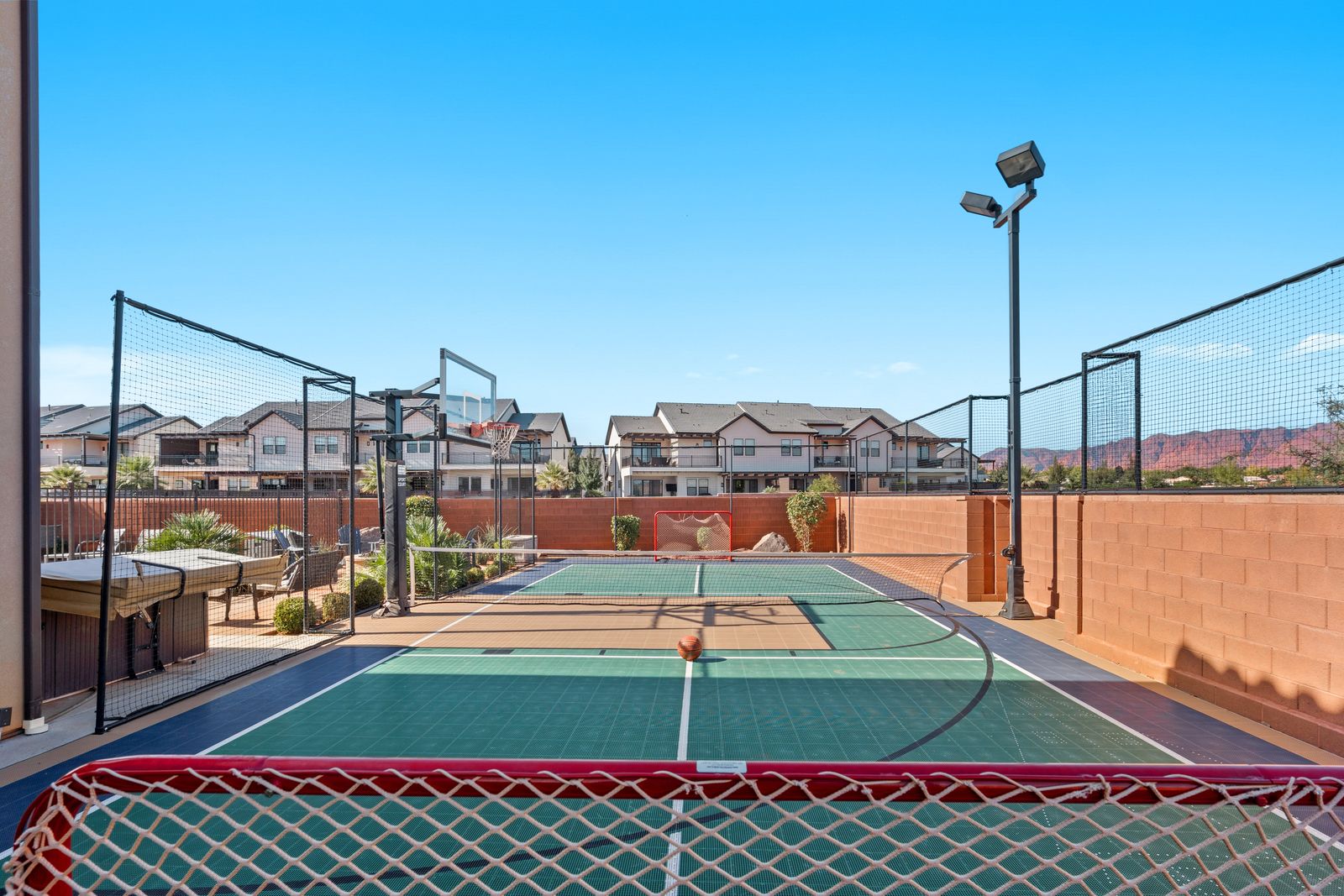 Welcome to our spectacular vacation rental in the heart of southern Utah, where your dream getaway becomes a reality! After exploring the breathtaking wonders of the region, unwind in your very own Private Pool & Hot Tub. Our property offers an outdoor oasis for all ages. The entire family can enjoy an expansive 18' x 28' private fenced pool and a separate splash pad. Sports enthusiasts will appreciate our private Sports Court®, equipped for pickleball, basketball, volleyball, jungle gym and various other court games to keep everyone active and entertained. Entertainment options are boundless here. Dive into a world of fun with a Pac-Man arcade game featuring an impressive selection of 160 games. For tech enthusiasts, we have three types of game consoles, including two Xbox Ones connected to two 4K TVs, a PlayStation connected to a 72" 4K TV, and a Nintendo Switch connected to an astonishing 82" 4K TV. With 1G internet service, seamless streaming is guaranteed on our six TVs, making it perfect for accommodating multiple guests enjoying their favorite shows and videos.