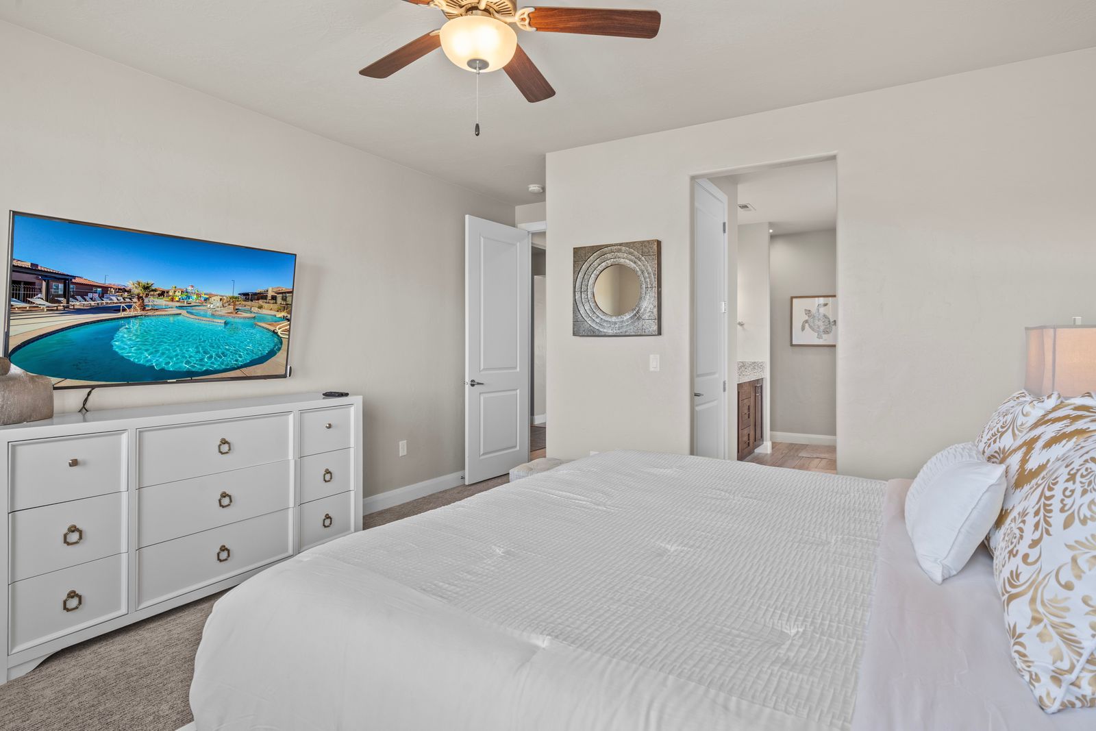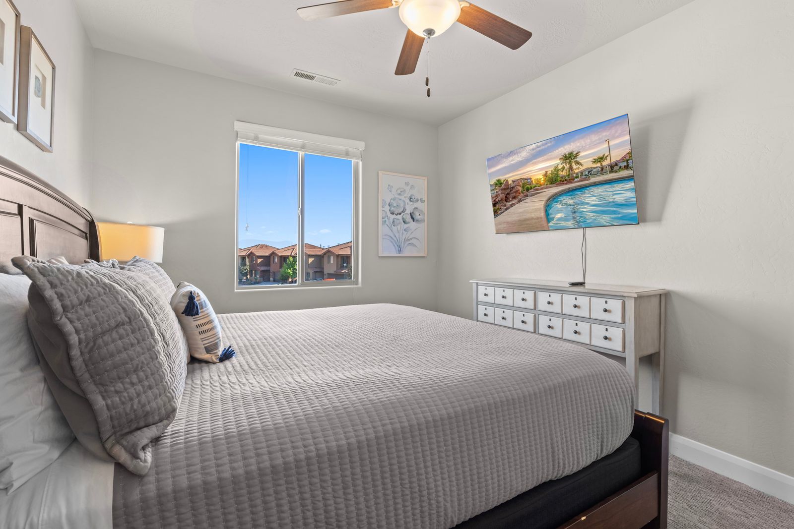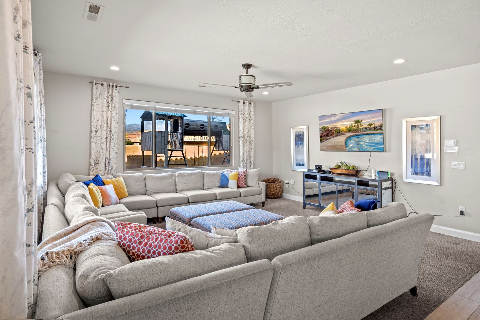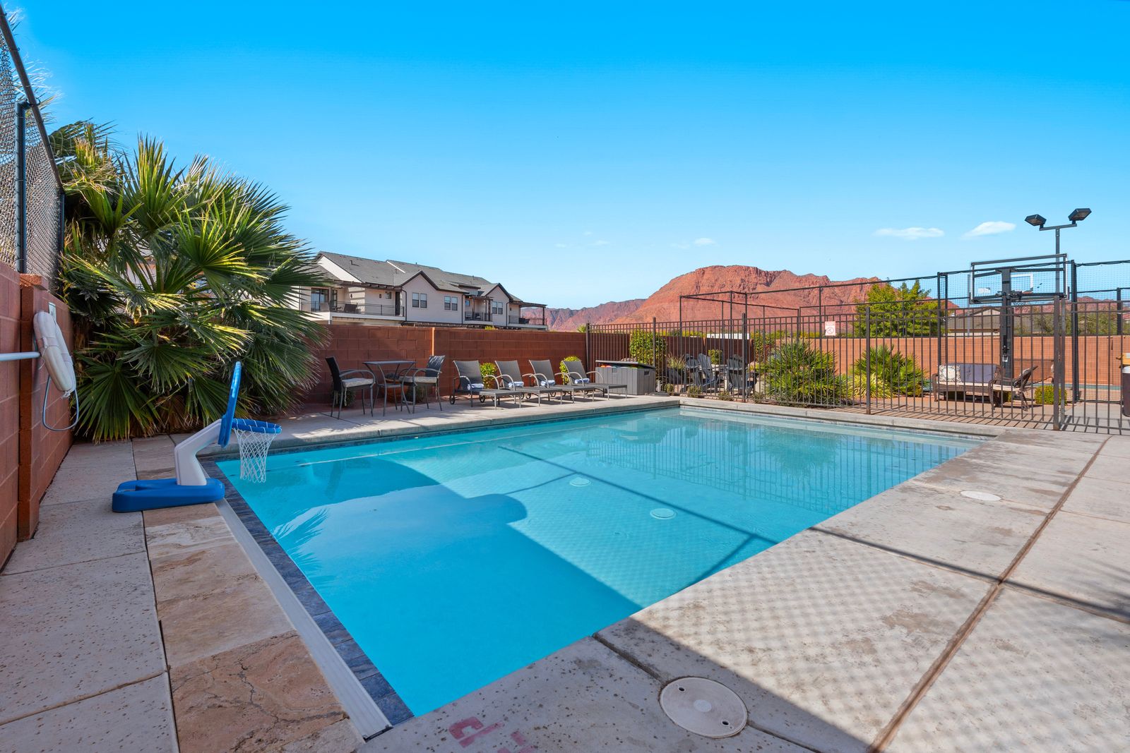 Welcome to our spectacular vacation rental in the heart of southern Utah, where your dream getaway becomes a reality! After exploring the breathtaking wonders of the region, unwind in your very own Private Pool & Hot Tub. Our property offers an outdoor oasis for all ages. The entire family can enjoy an expansive 18' x 28' private fenced pool and a separate splash pad. Sports enthusiasts will appreciate our private Sports Court®, equipped for pickleball, basketball, volleyball, jungle gym and various other court games to keep everyone active and entertained. Entertainment options are boundless here. Dive into a world of fun with a Pac-Man arcade game featuring an impressive selection of 160 games. For tech enthusiasts, we have three types of game consoles, including two Xbox Ones connected to two 4K TVs, a PlayStation connected to a 72" 4K TV, and a Nintendo Switch connected to an astonishing 82" 4K TV. With 1G internet service, seamless streaming is guaranteed on our six TVs, making it perfect for accommodating multiple guests enjoying their favorite shows and videos.