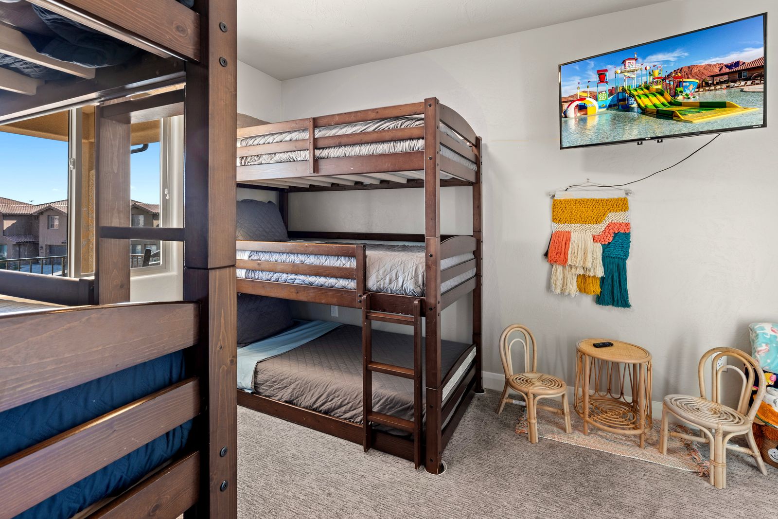 Our spacious vacation rental boasts six bedrooms and eight bathrooms, comfortably accommodating up to 20 guests in beds. Need extra space? We've got you covered with six sleeping pads, suitable for kids and additional guests. The sleeping arrangements include four king suites, two bunk rooms (one with two twin-over-full bunk beds and one with two triple bunks), and six sleeping pads for added flexibility. At our property, you'll truly experience a "Lazy Daze" of relaxation and recreation. Book your stay now and embark on an unforgettable journey in this exceptional 6-bedroom, 8-bathroom vacation rental, perfect for families and friends seeking an extraordinary getaway!
