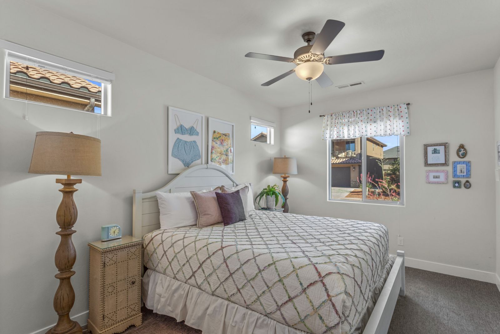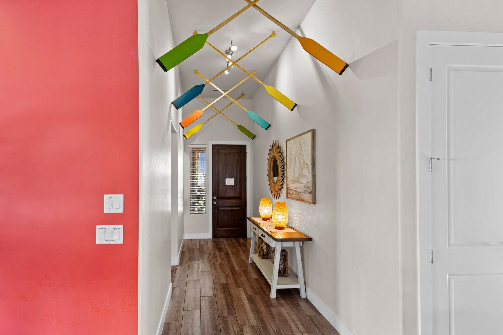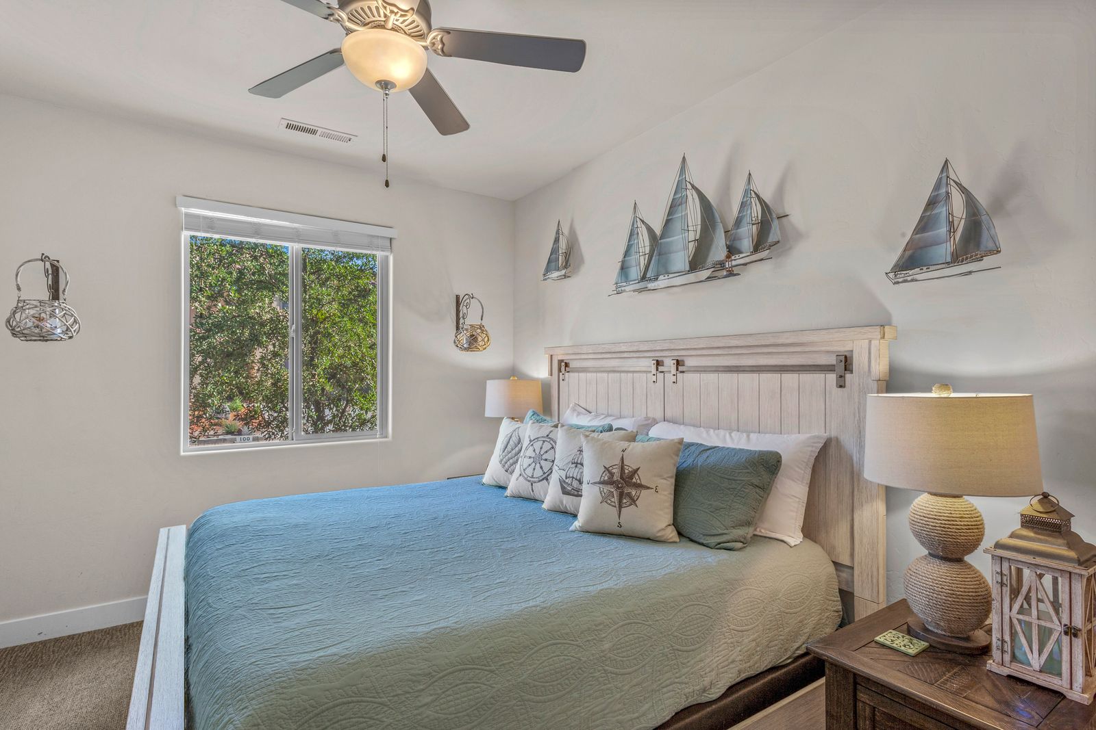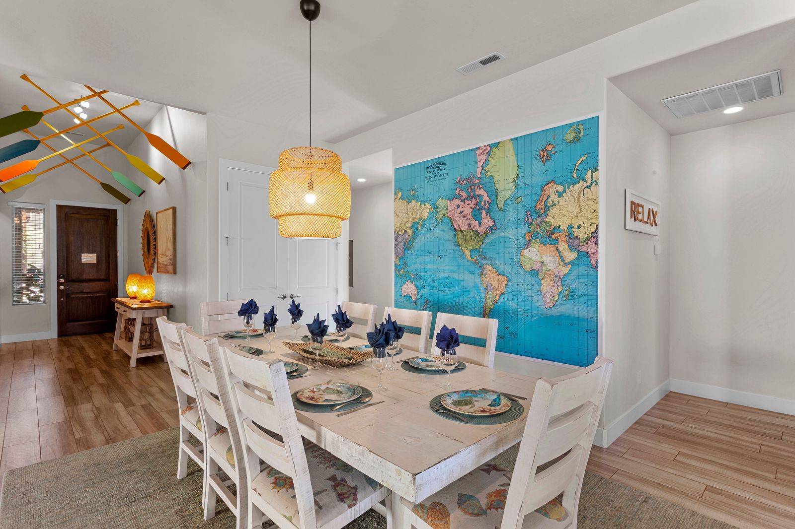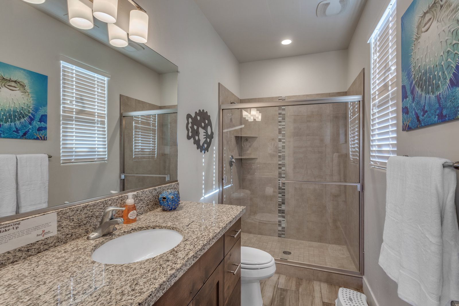 The Bahama Beach Club is a beautiful 5 bedroom / 5 bath home that comfortably sleeps 14 guests or up to 18 guests with the assistance of 2 queen air mattresses. With a different theme in every room, you will not know which room to choose! The Sailor Suite comes with built in reading lights for the late-night book worms, and the ultimate gamers closet stocked with an Insignia Roku TV, a PS4, and plenty of board games. The Mermaid Suite comes with an Insignia Roku TV and a mattress so comfortable it would send King Triton off to the sweetest of dreams. The Seahorse Suite comes with an Insignia Roku TV and two charging stations. The Retro Beach Suite will have you traveling back in time and comes with an Insignia Roku TV. Anchors away in the Sailboat Suite with an Insignia Roku TV. Barbeque steaks on the back patio under the setting desert sun. Cozy up in the giant bamboo lounge chairs in your own tropical beach oasis while having a movie night with the whole family, play to win in your own ping pong tournament, and laugh the day away while playing one of many fun and exciting family games! Regardless of what you do, you will have the absolute best vacation at The Bahama Beach Club!