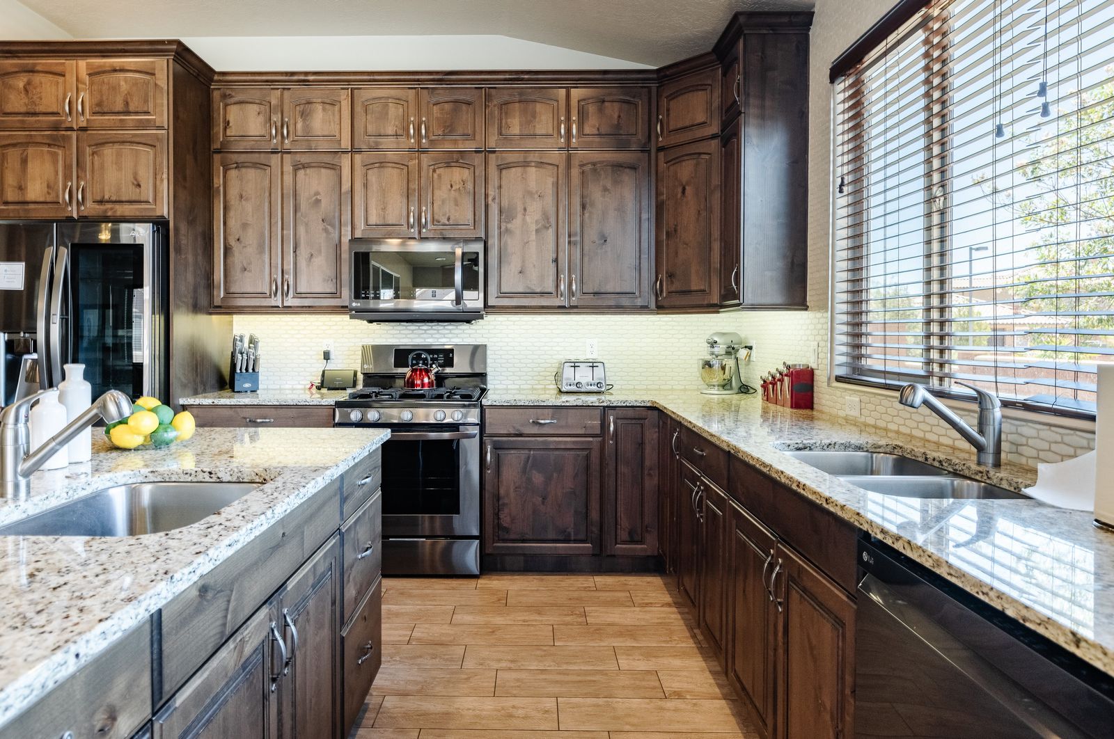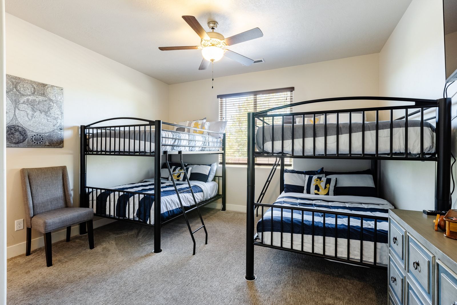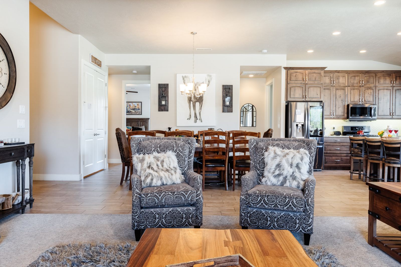 Spend your next Southern Utah vacation "Livin' the Dream" at Paradise Village! This elegant getaway features a luxurious yet rustic welcoming atmosphere and can fit as many as 14 people comfortably. Each bedroom features an attached bathroom and a TV with access to Netflix, Hulu, and more! While the living room has access to Chromecast and smart TV. Cook some delicious food in the spacious kitchen or out on the grill! With many bbq tools and a stocked kitchen, cooking will be a breeze!