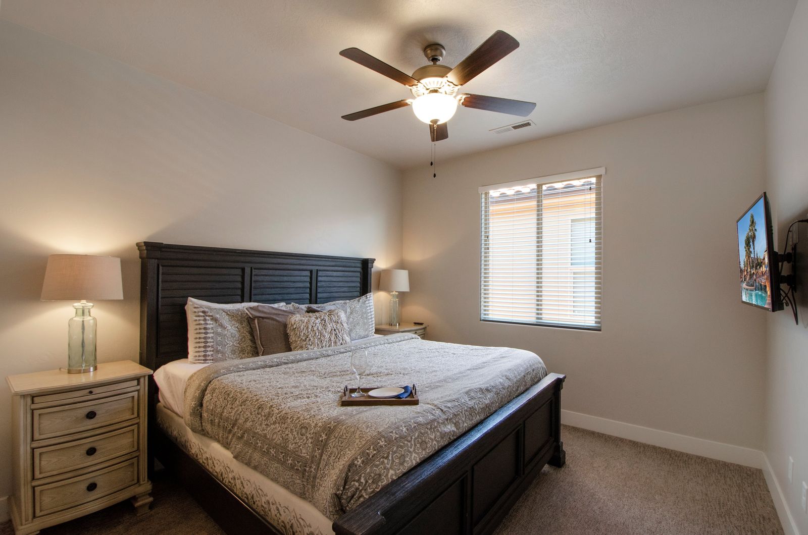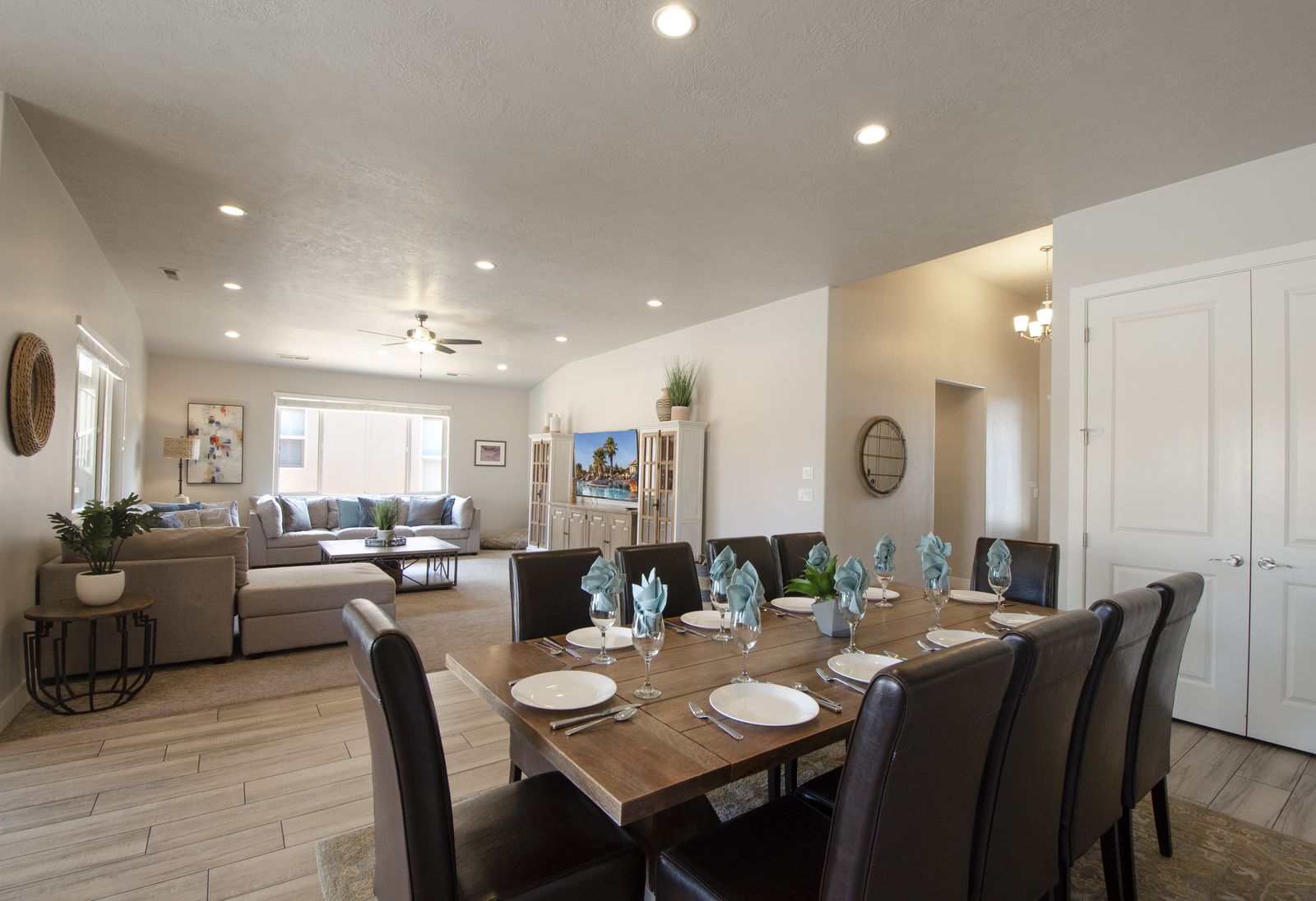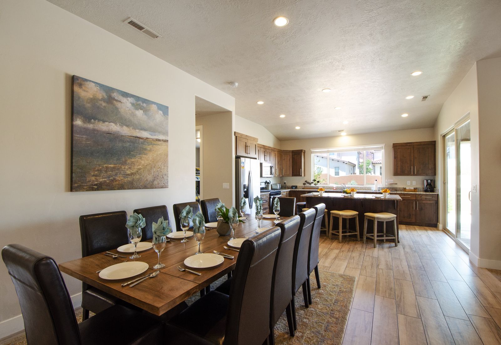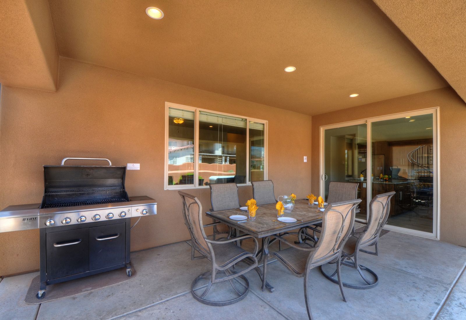 Mountain View Retreat is a beautiful 5 bedrooms / 5 bath that can comfortably accommodate 14 guests or up to 16 guests with the assistance of a queen air mattress. The expansive fully equipped kitchen, grill, indoor & outdoor dining, and outdoor lounge areas make hosting family & friends a breeze. Spend your days lounging by Paradise Village’s resort-style pool, swimming at the waterpark, or challenging each other to ping pong and spike ball tournaments! Take advantage of the many bike paths right out your front door and explore southern Utah on the bikes provided. Host a game night playing one of the many board and card games provided or challenging each other to games on the PS4. Grab your roasting sticks and some marshmallows to head up to the balcony to watch the sunset over the desert mountains while making a delicious smore! At the end of a long day, relax your muscles in your private hot tub under the starry night sky. Take solace in the comfort of your own room, each with a Smart TV, finding some peace and quiet has never been easier! No matter how you spend your days, you are sure to find relaxation, comfort, and extravagant views while staying at Mountain View Retreat!