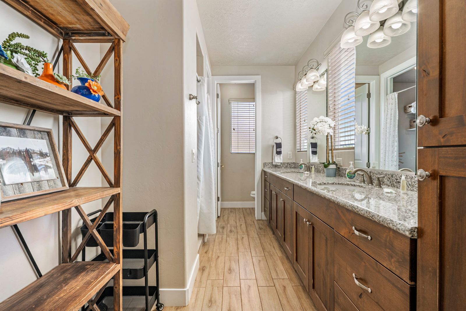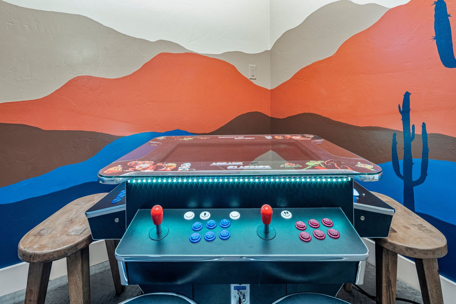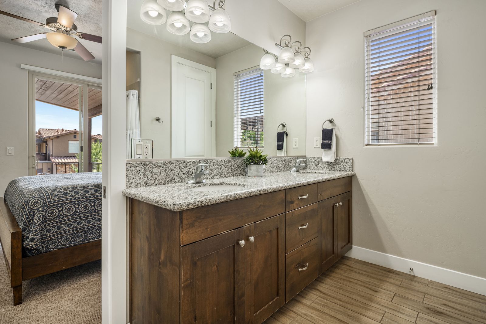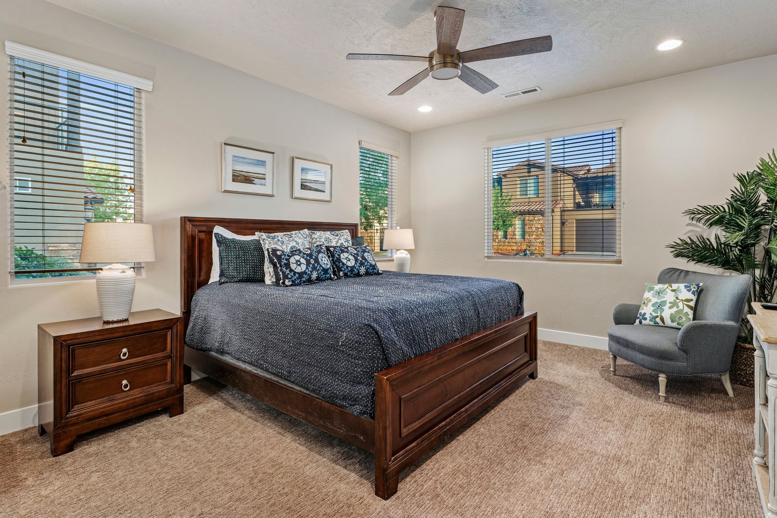 Poolside Paradise is a beautiful 4 bedroom / 4 & 2 ½ bath home that can comfortably accommodate 12 guests or up to 20 guests with the assistance of 3 queen air mattresses. The expansive fully equipped kitchen, grill, indoor & outdoor dining, and outdoor lounge areas make hosting family & friends a breeze. Spend your days lounging next to Paradise Village’s resort-style pool or swimming at their waterpark! Take off for a day trip to one of the National or State parks within a close drive to explore the beauty Southern Utah has to offer. Back at home, challenge each other to ping pong or foosball tournaments. Evenings will quickly become your favorite time of day as you lounge in the hammock on the balcony while watching the sunset over the desert mountains! Grab a bowl of popcorn and settle in for a cozy movie night, with two living rooms, each with a Smart TV, everyone will be able to find a movie they can enjoy! Whether you are adventuring through Southern Utah, lounging poolside, or competing in a ping pong tournament, you will find your own personal paradise at Poolside Paradise!