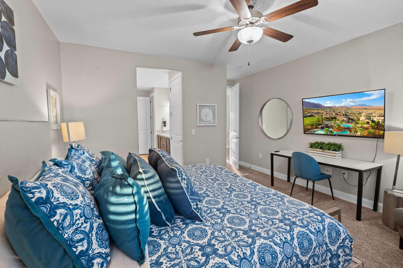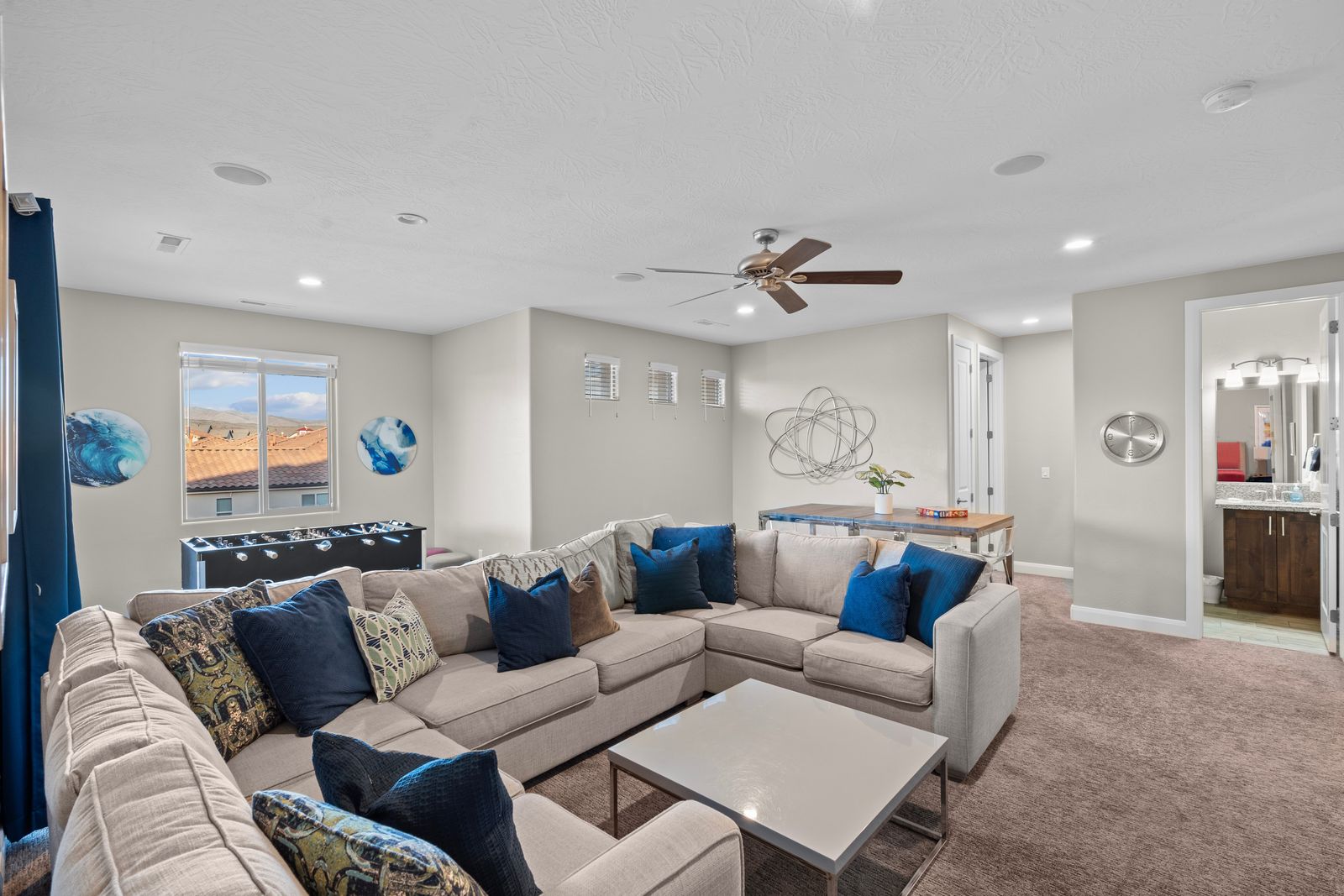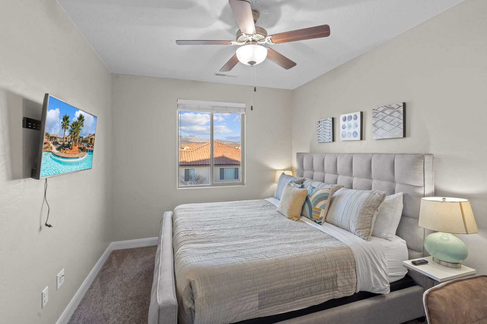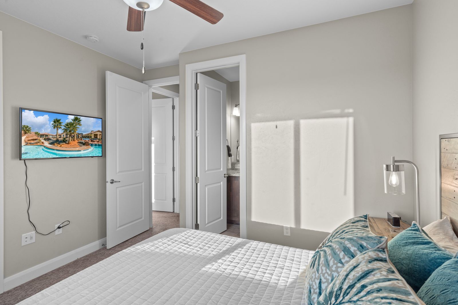 Aloha Retreat is a vibrant 6 bedroom / 8 bath home that will put you into vacation mode at first sight! This home comfortably sleeps up to 28 guests. Start your morning’s off with a hot cup of coffee and watch the sunrise over the mountains from your balcony. Spend your day adventuring through Southern Utah, lounging by the resort-style pool and water park, or relaxing at home! The kids will have a blast challenging each other to ping pong, foosball, and basketball tournaments. The fully equipped, expansive kitchen, grill, indoor and outdoor dining make entertaining friends and family a breeze! Roast marshmallows around the fire for a sweet treat and quality time after dinner or host a family movie night in one of the two living rooms with Smart TVs and YouTube TV! After a long day in the sun, wind down with a cold drink in your private hot tub under the starry sky. No matter how you spend your vacation, Aloha Retreat will have you relaxed and making timeless memories in no time!
